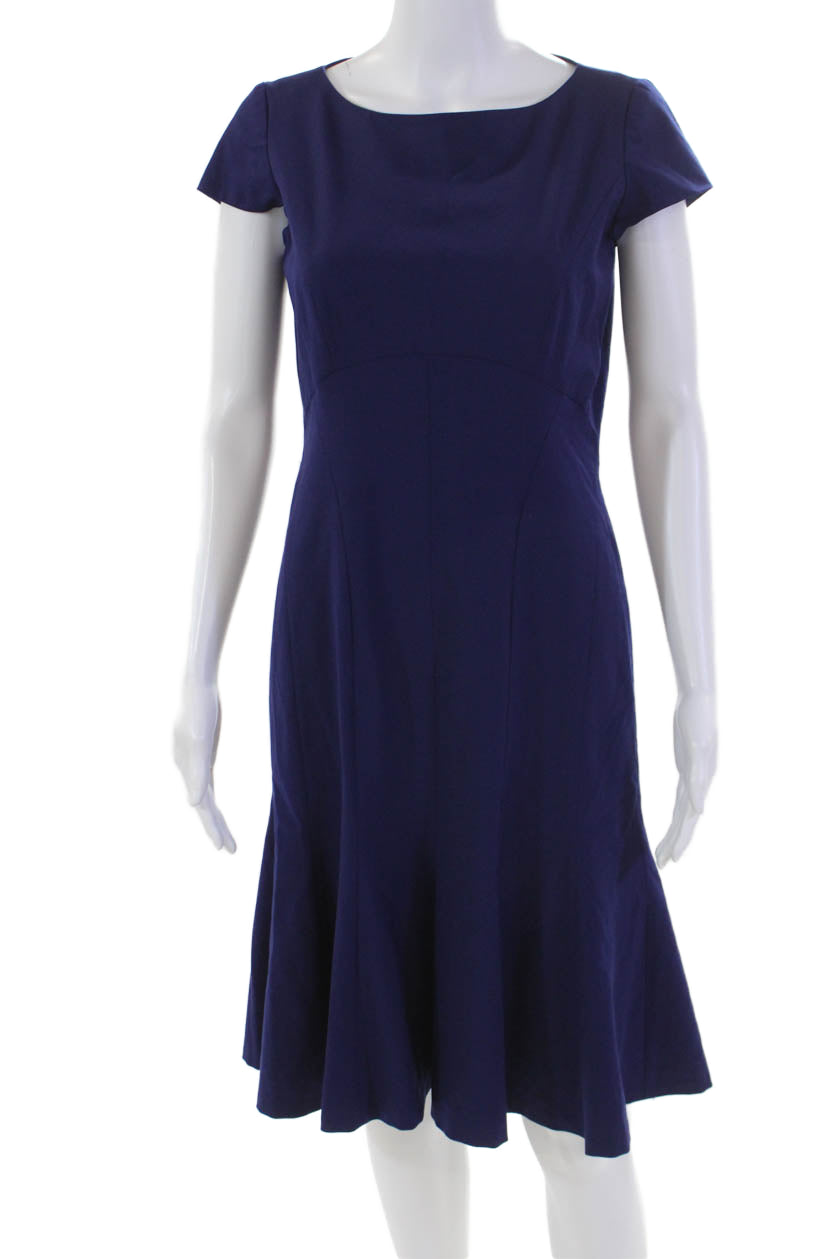 Lafayette 148 New York Women's Short Sleeves Flare Mini Dress Blue Size 0