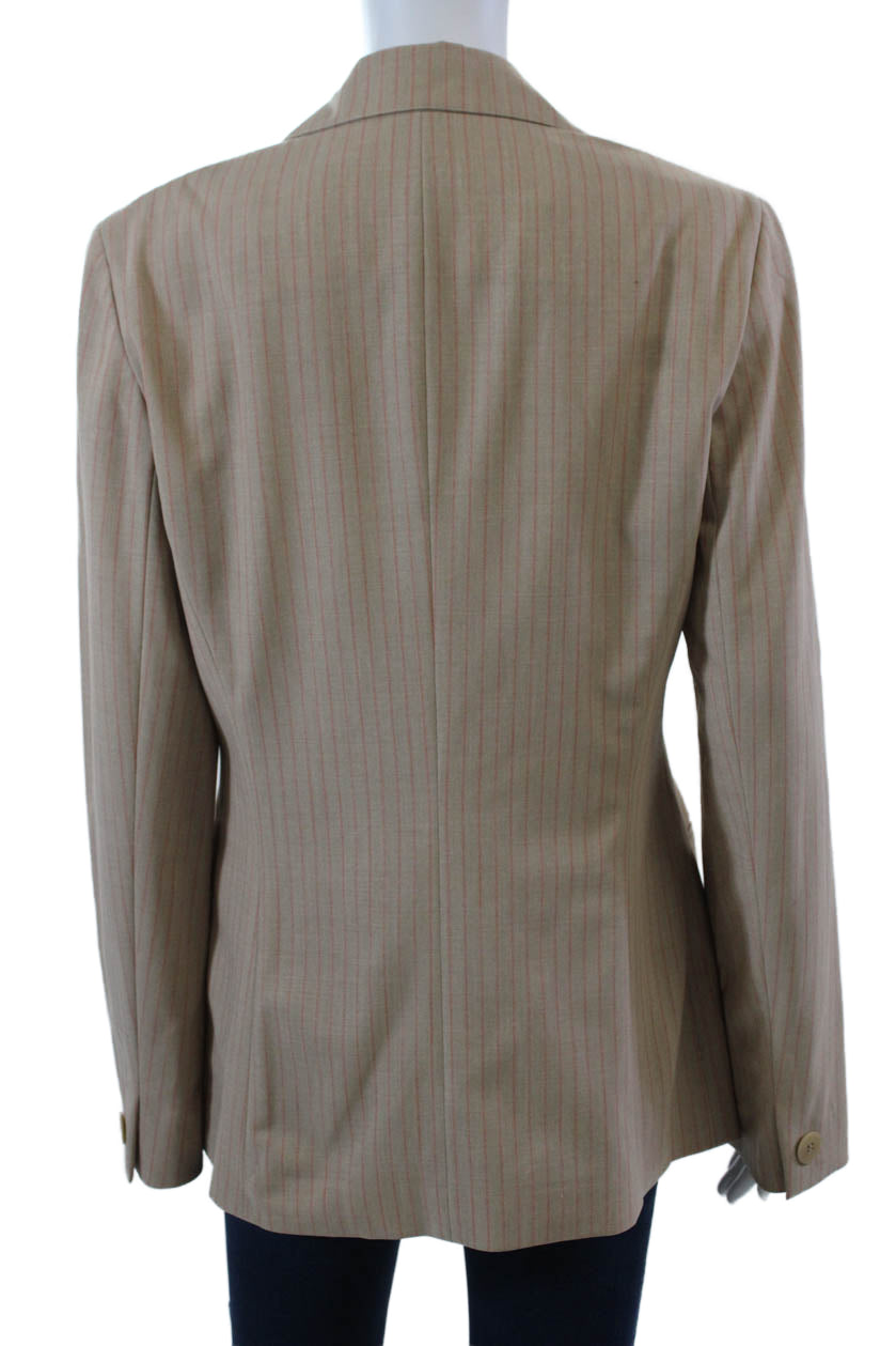 Lafayette 148 New York Womens Single Button Striped Blazer Jacket Brown Size 8