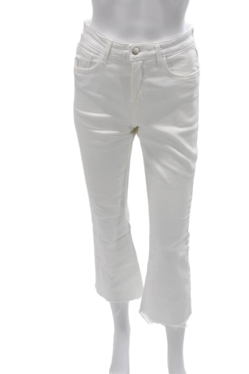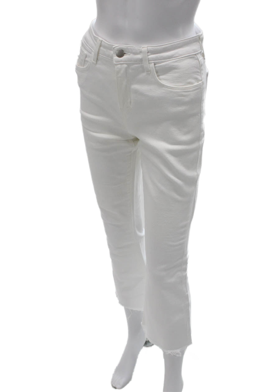 L'Agence Womens Cropped Jeans White High Rise Button 24in Size 26