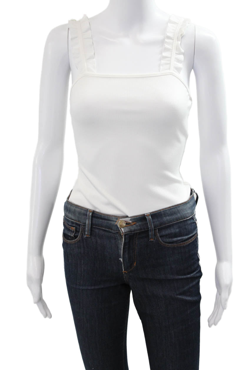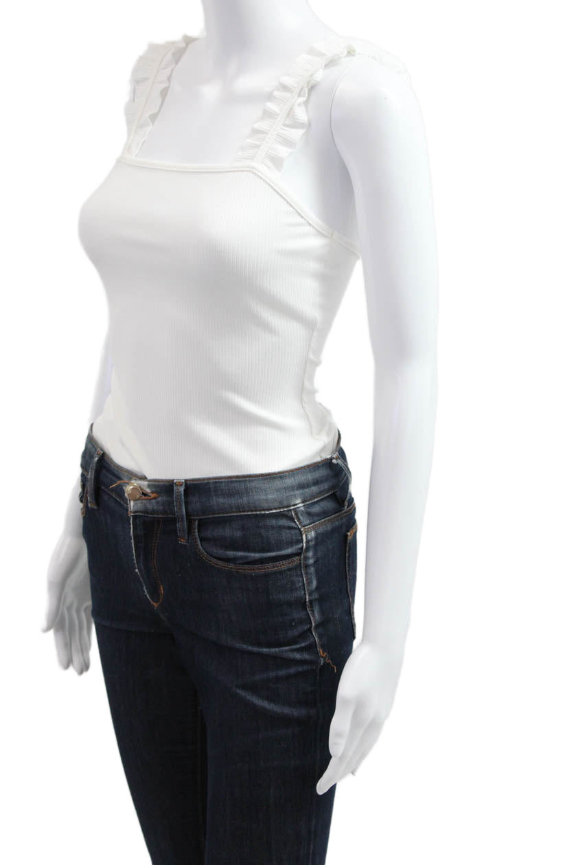 Le Lis Womens Camisole Square Neck Button White Sleeveless Size S