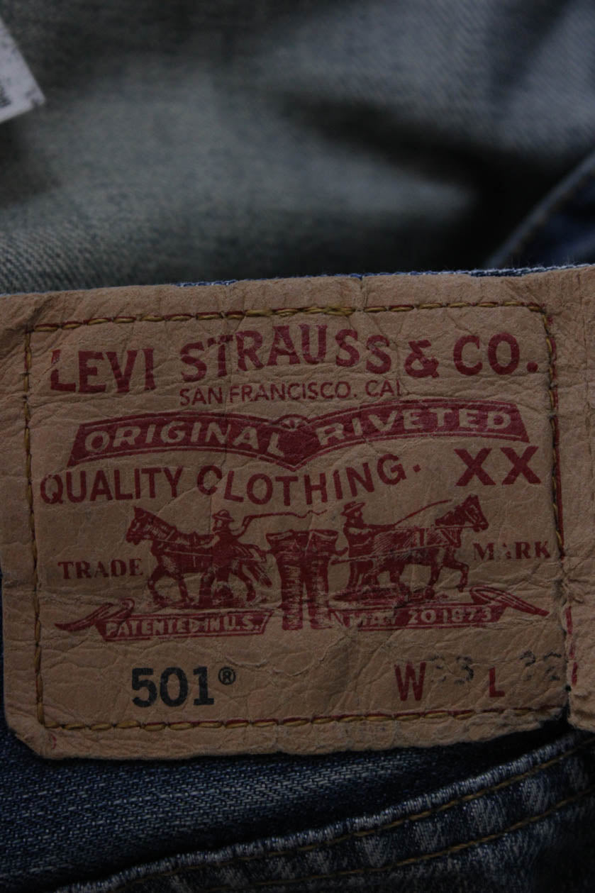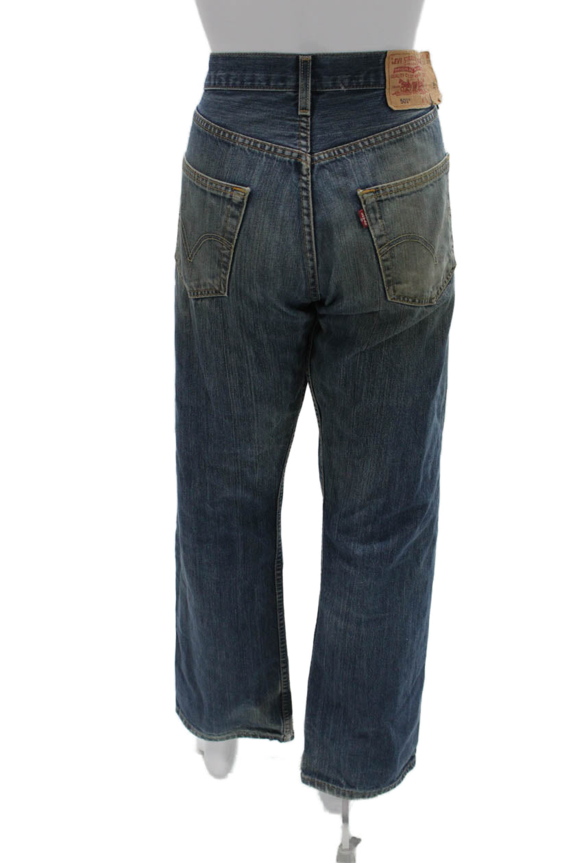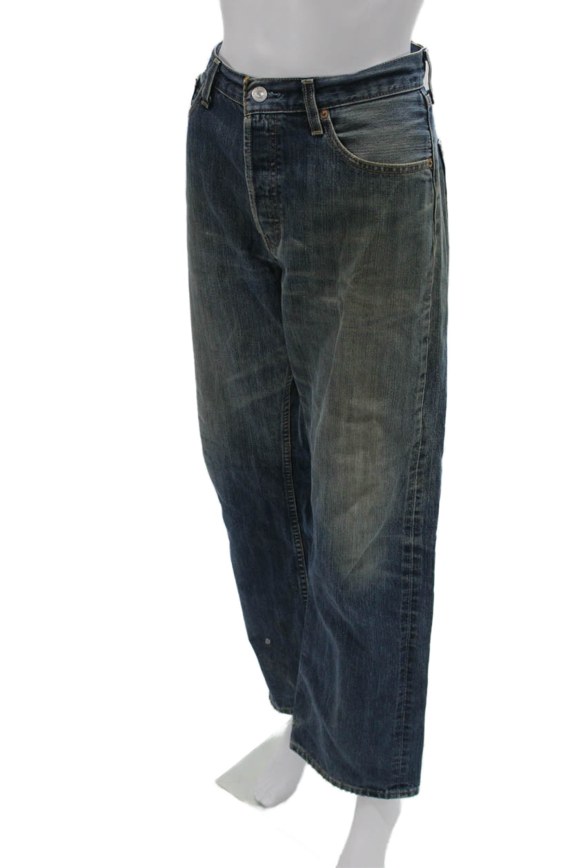 Levis Men Straight Wide Leg Dark Blue Mid Rise Cotton Jeans Size 32