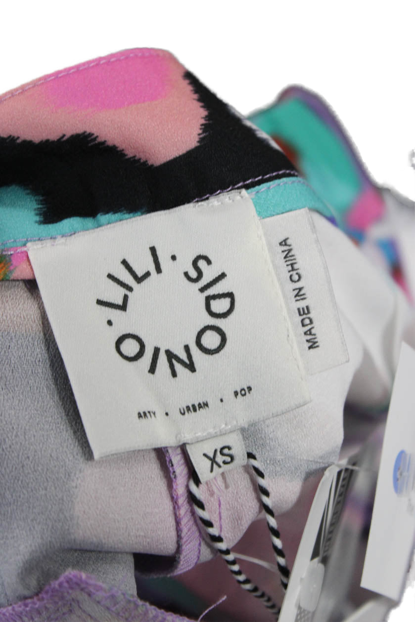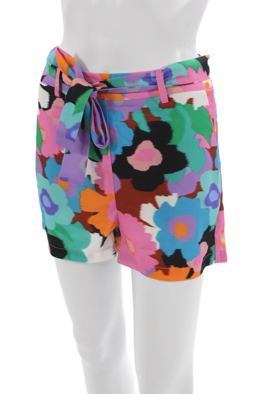 Lili Sidonio Women Black Floral Tie Waist Polyester Shorts Size XS