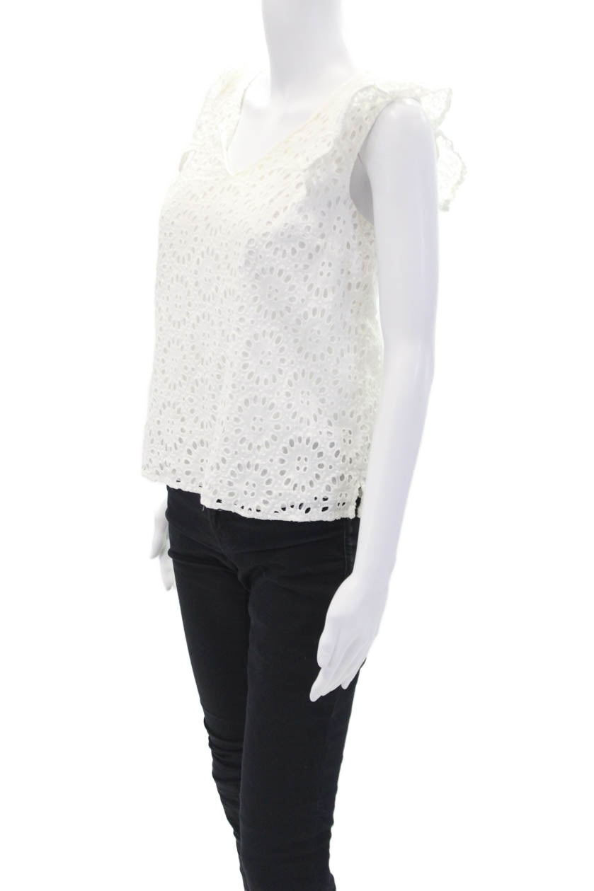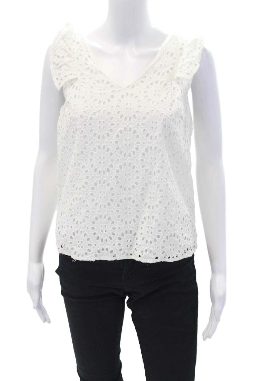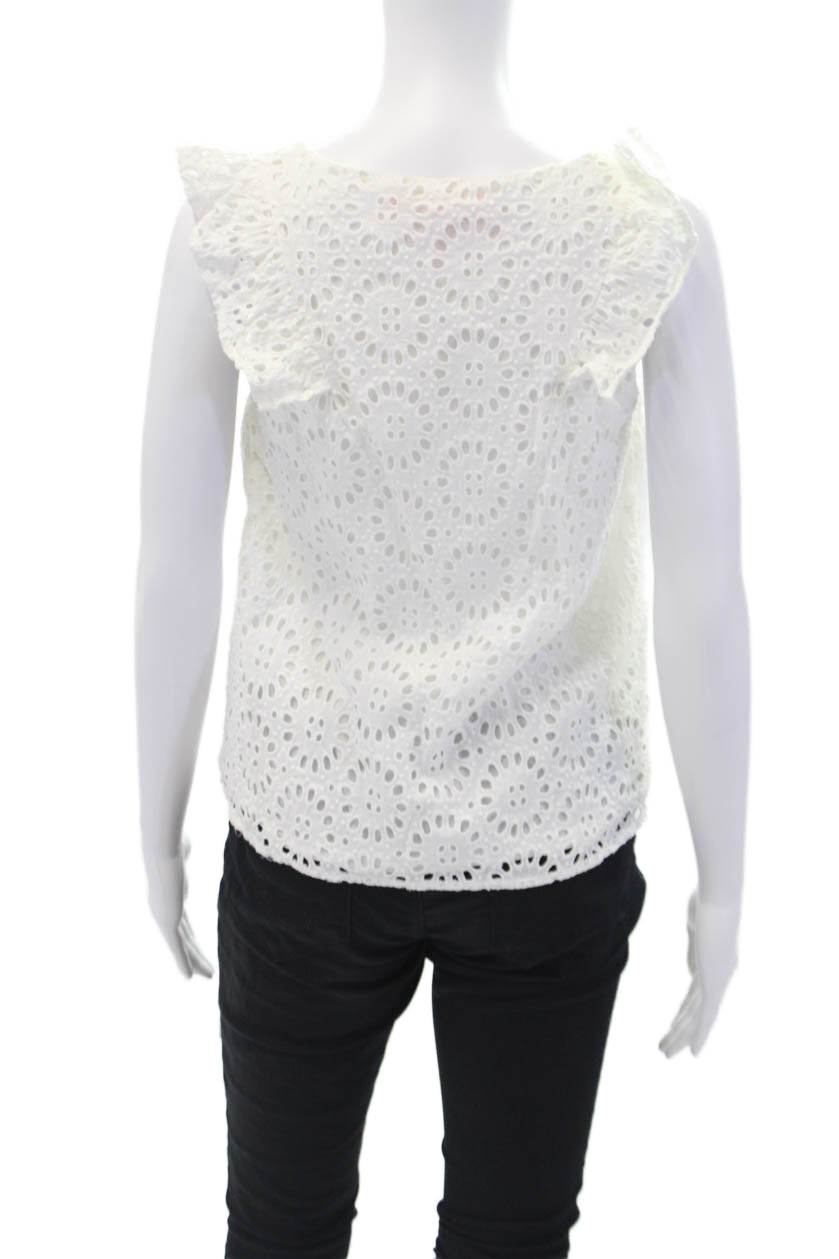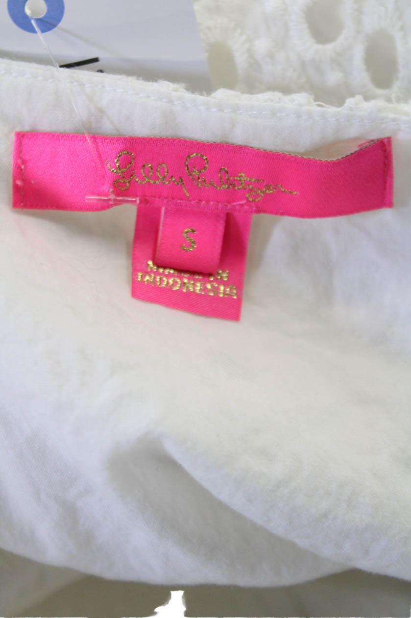 Lily Pulitzer Womens Cotton V-neck Short Sleeve Lace Blouse White Size S