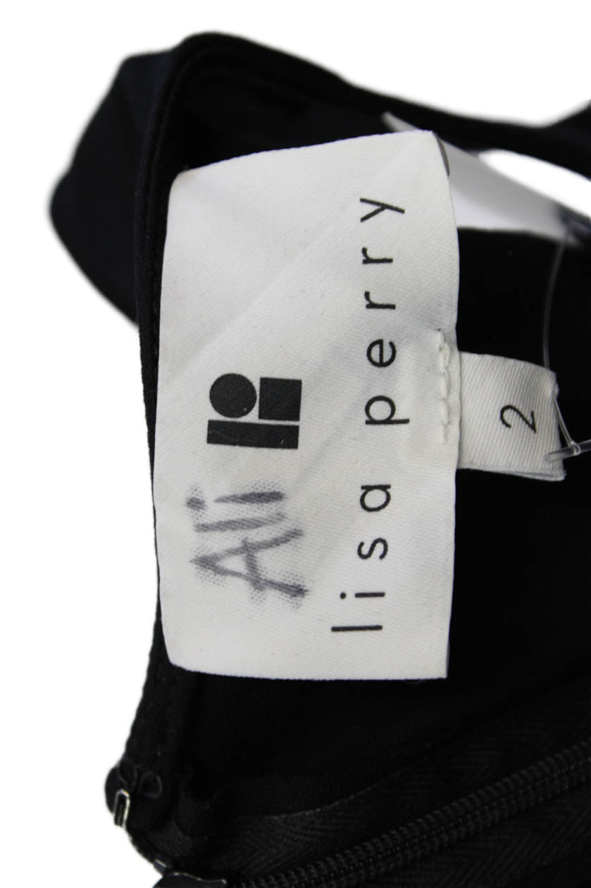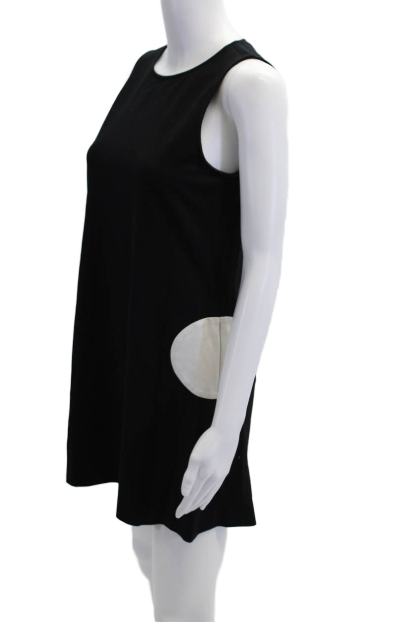 Lisa Perry Womens Back Zip Scoop Neck Dotted Mini Dress Black White Size 2