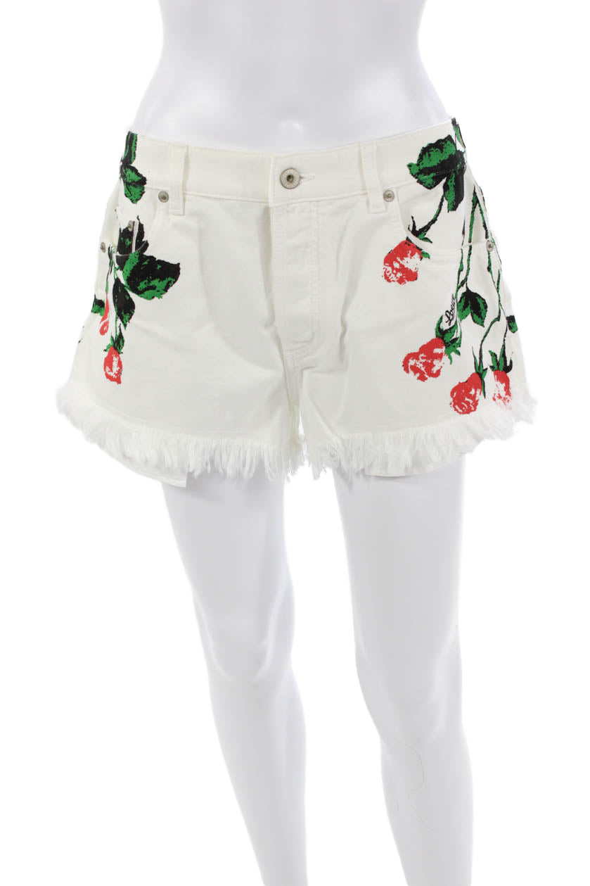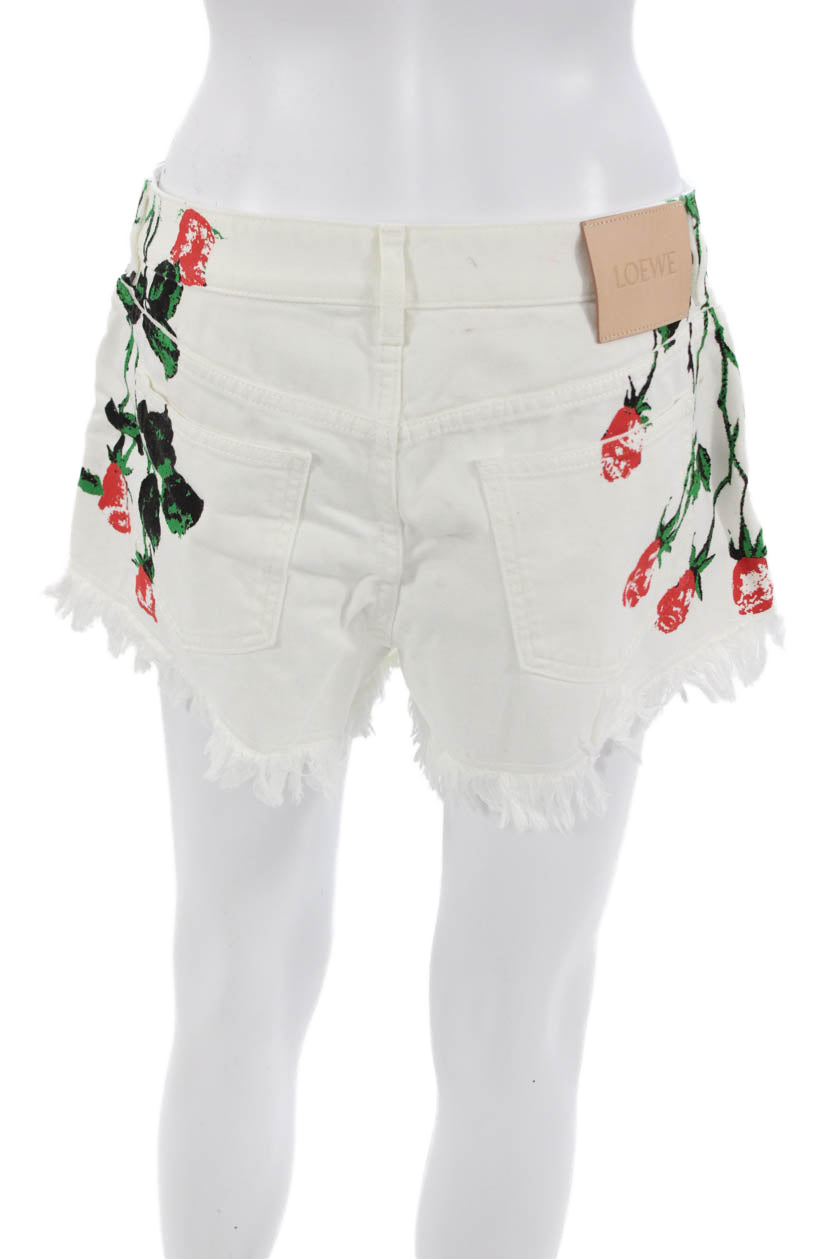 Loewe Unisex Designer Floral Cotton Shorts White Button Size 40