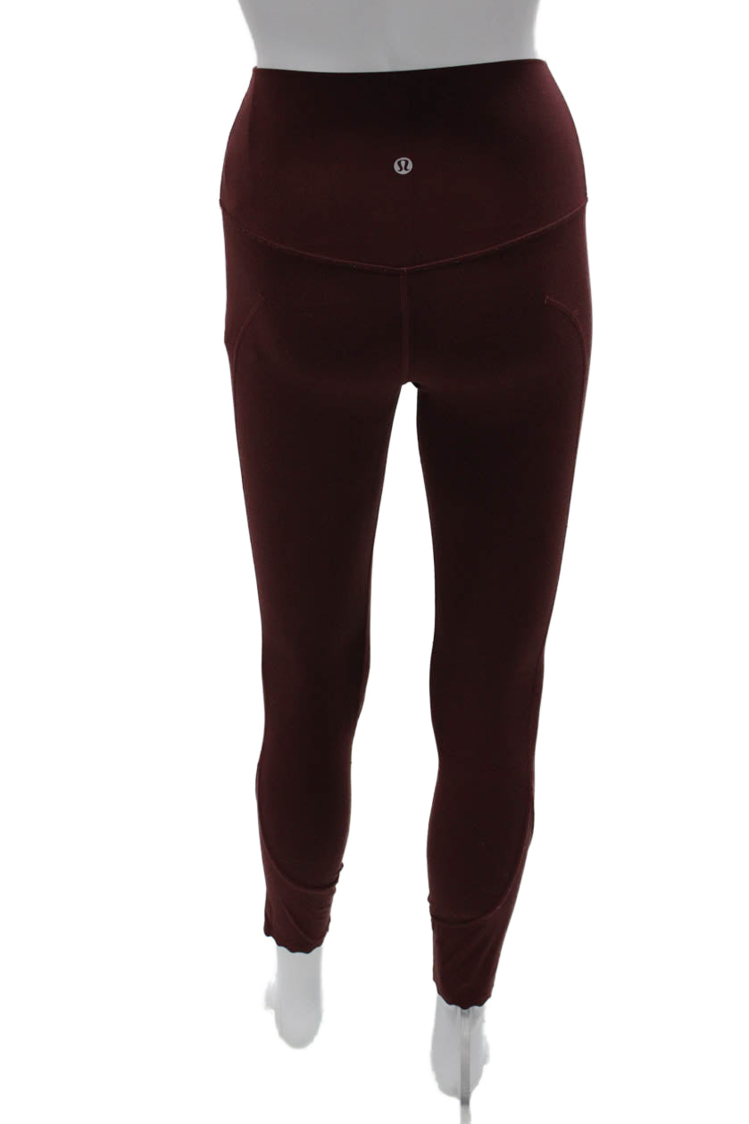 Lululemon Women Ankle Leggings Red Nylon Solid Pull On Size 4