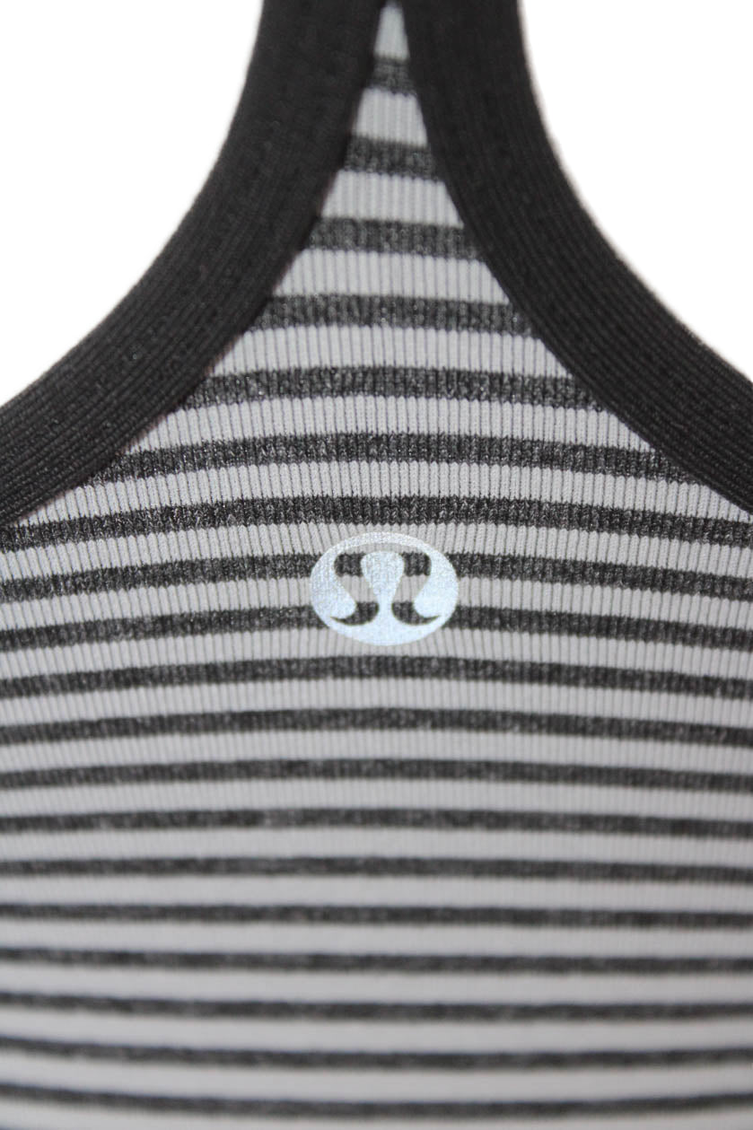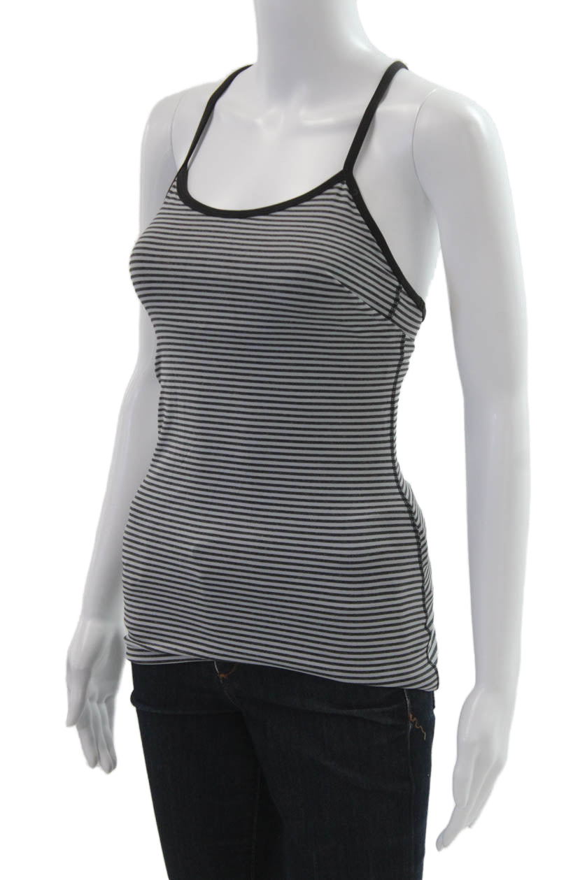 Lululemon Womens Black Striped Cotton Camisole Round Neck Size 4