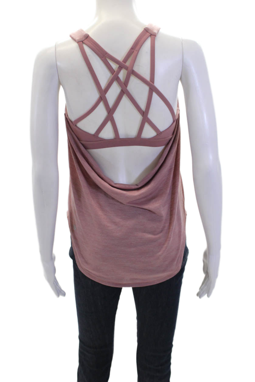 • Lululemon Womens Stretch Strappy Scoop Neck Activewear Tank Top Pink Size 4