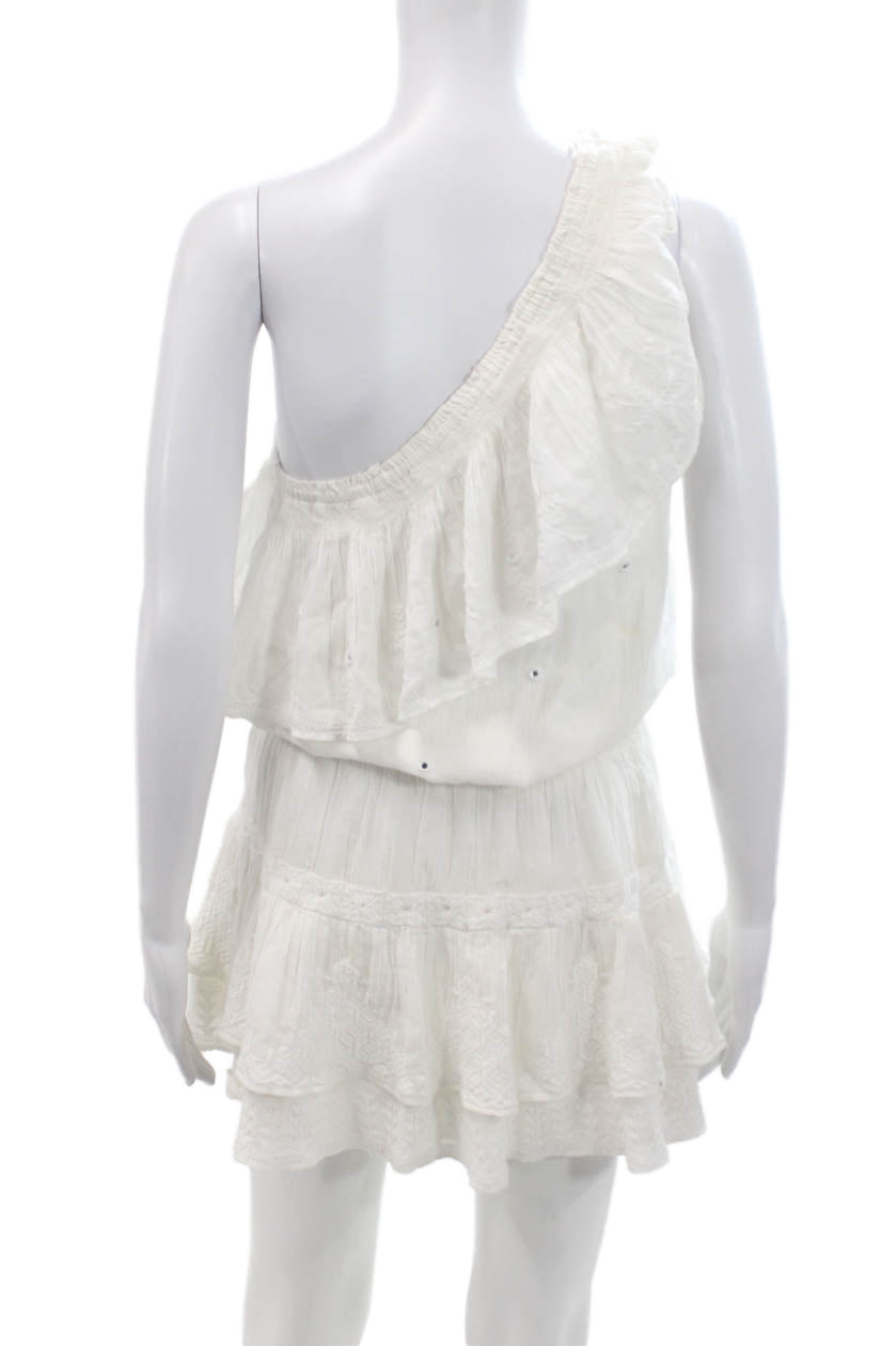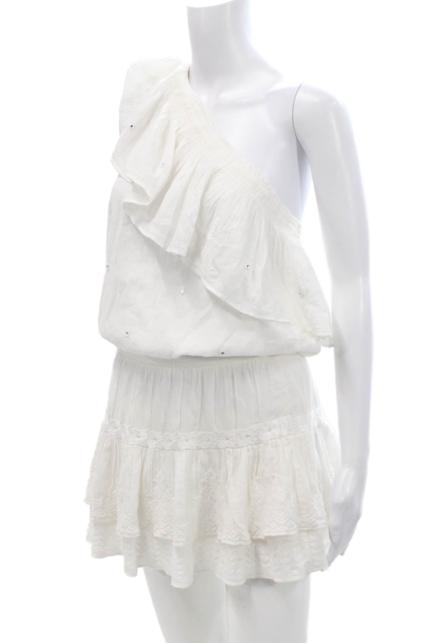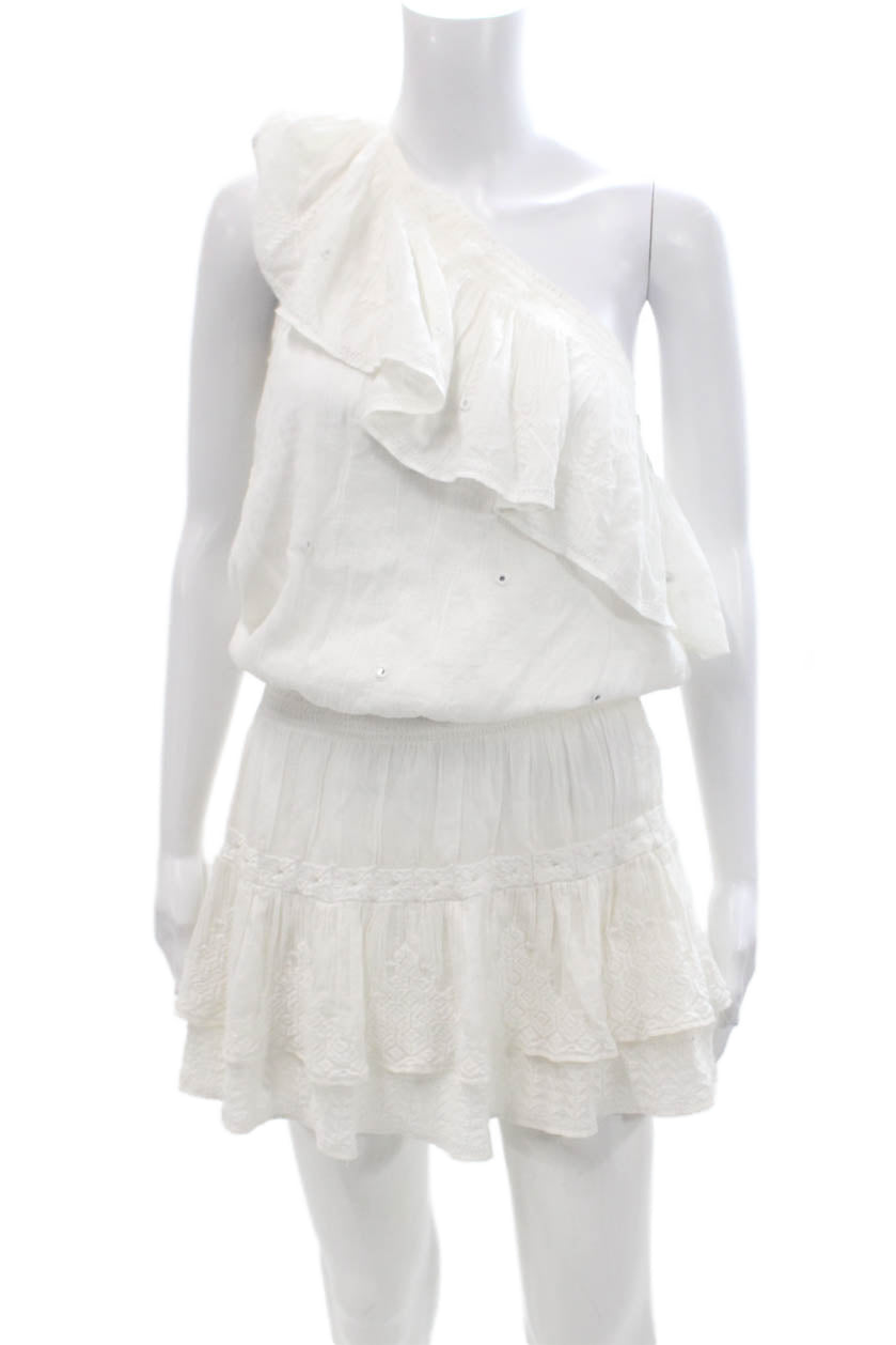 Maje Womens One Shoulder A Line Dress White Cotton Size Small