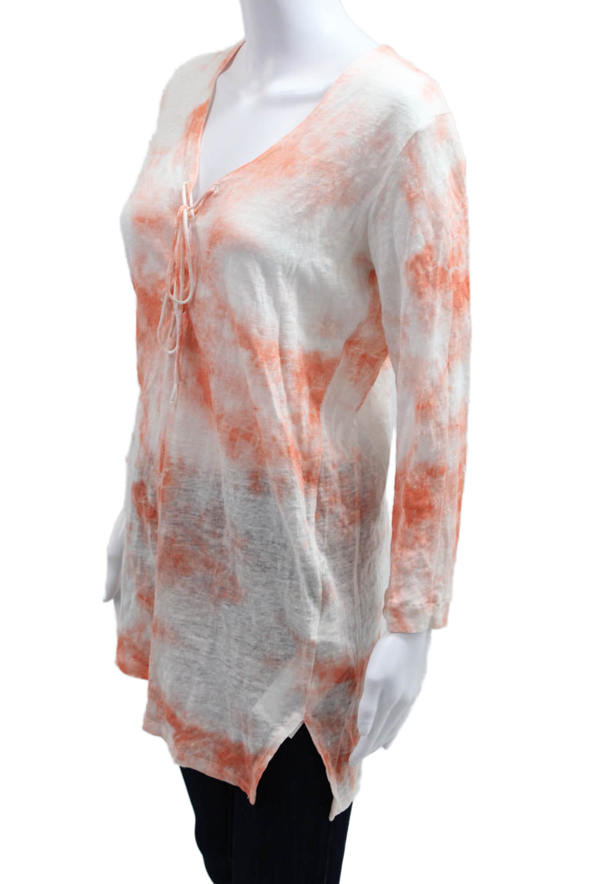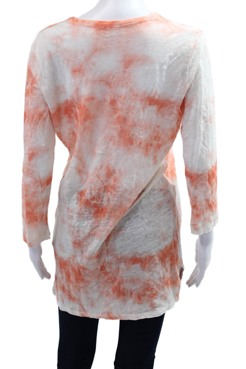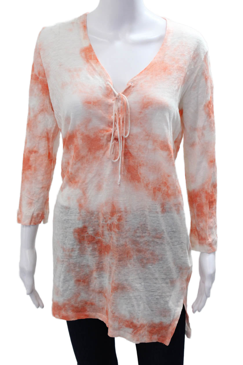 Majestic Filatures Women Tunic V-Neck Orange 3/4 Sleeve 100% Polyester Size 3