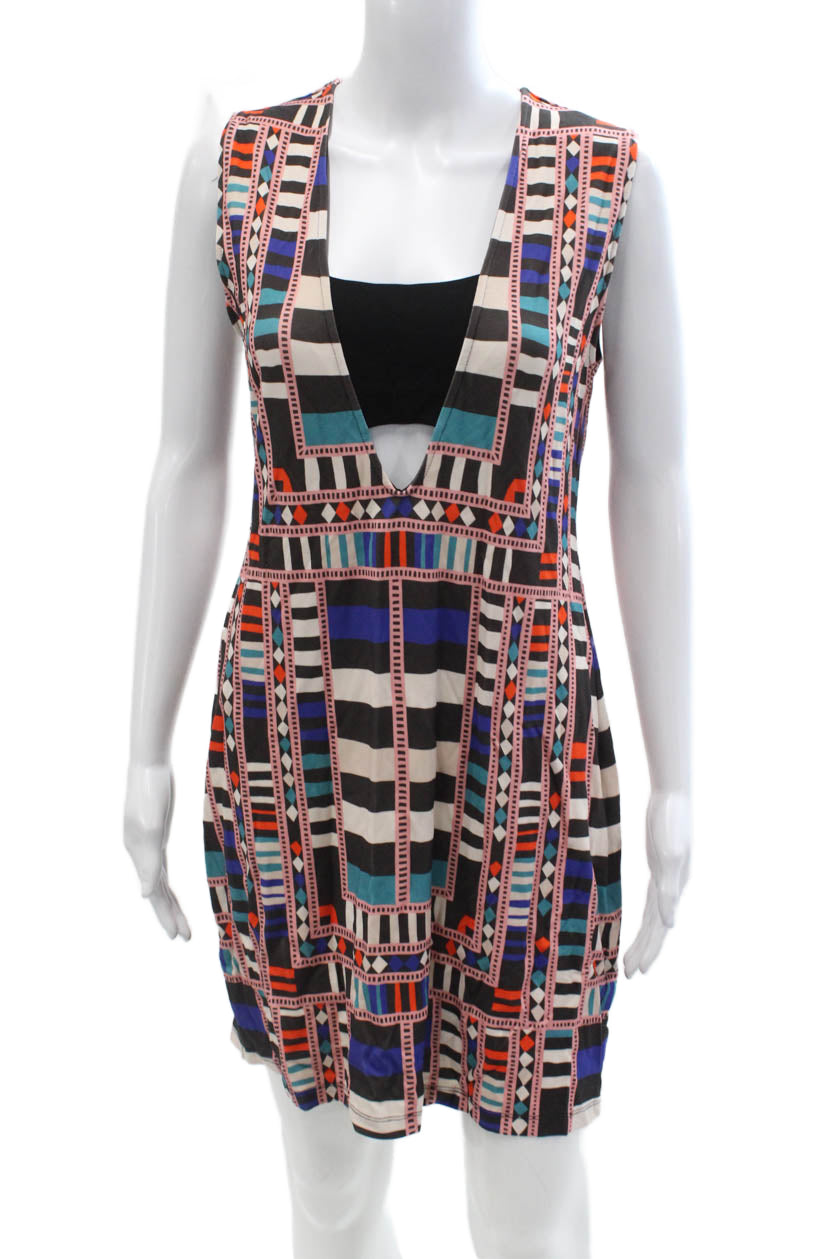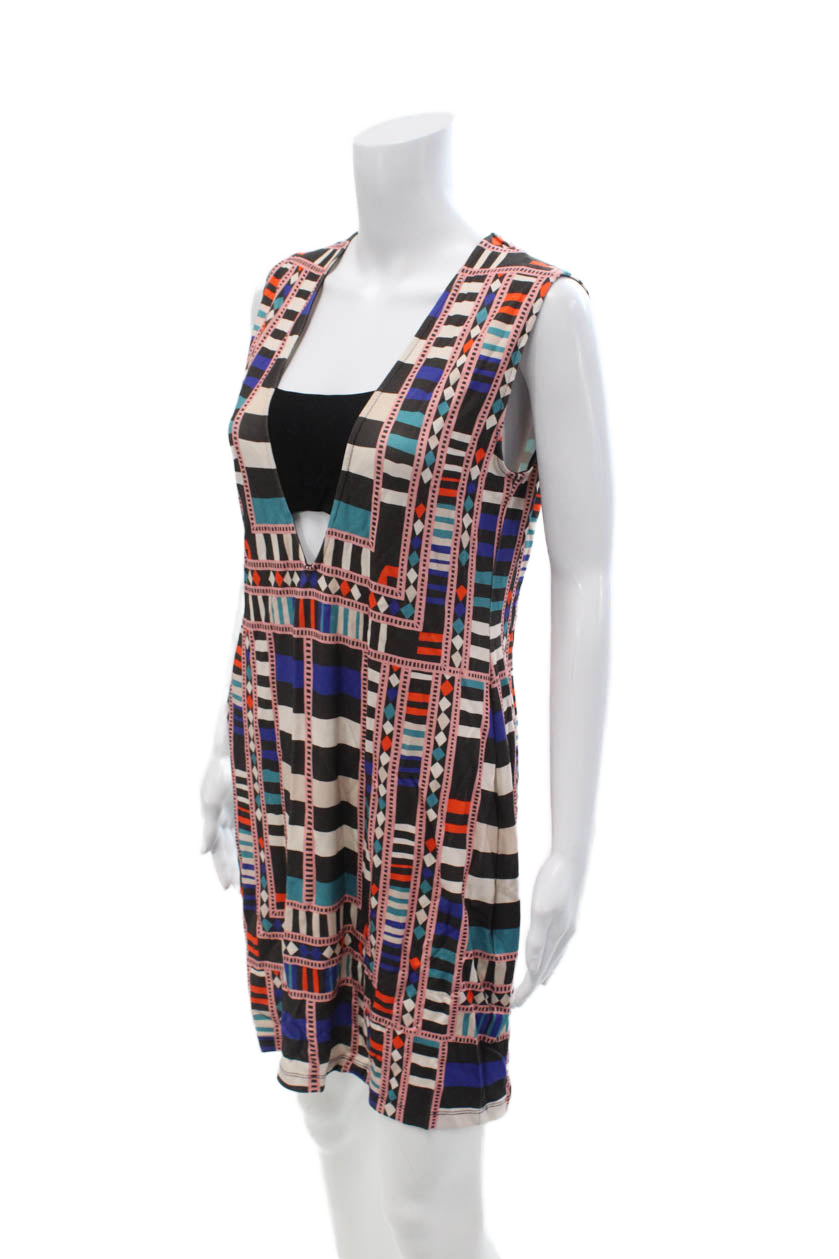 Mara Hoffman Womens Black Aztec V Neck Sleeveless Shift Mini Dress Size M
