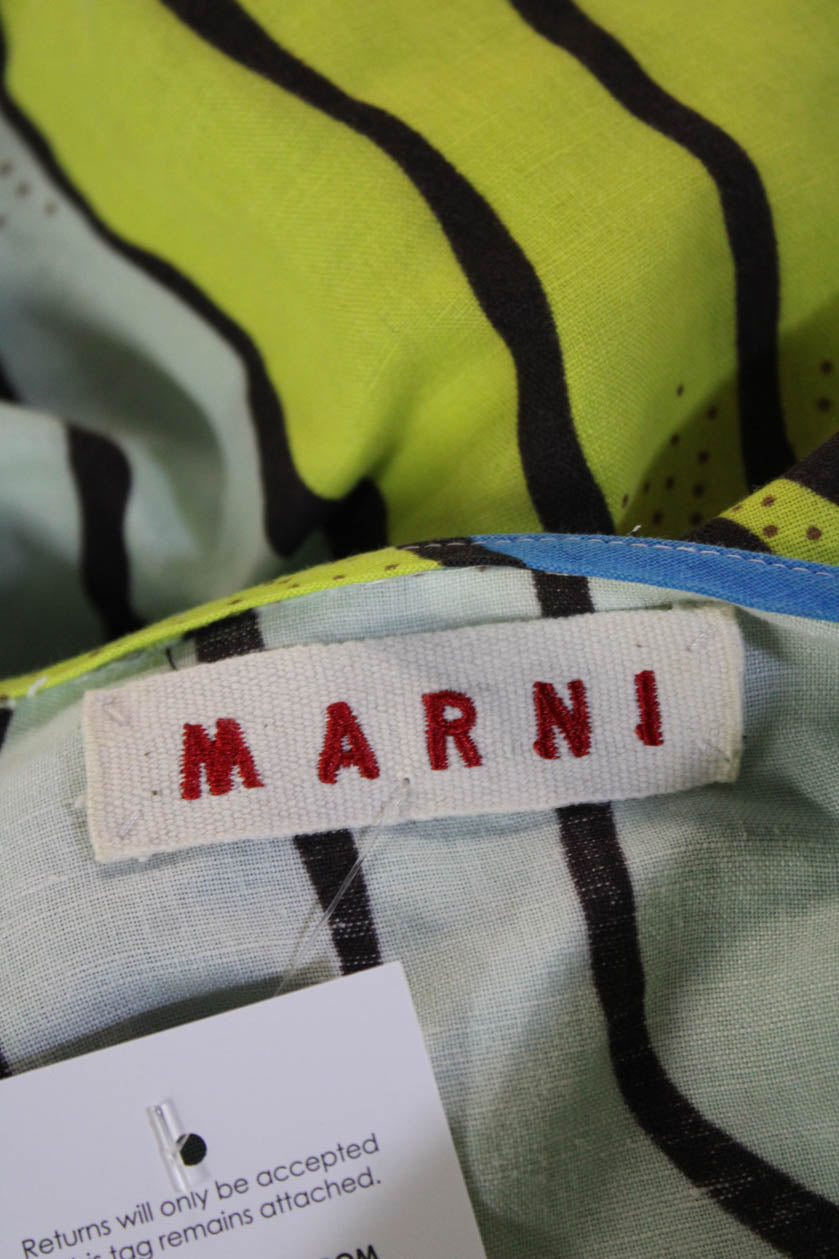 Marni Women Shift Dress Black V Neck 3/4 Sleeve Cotton Size S