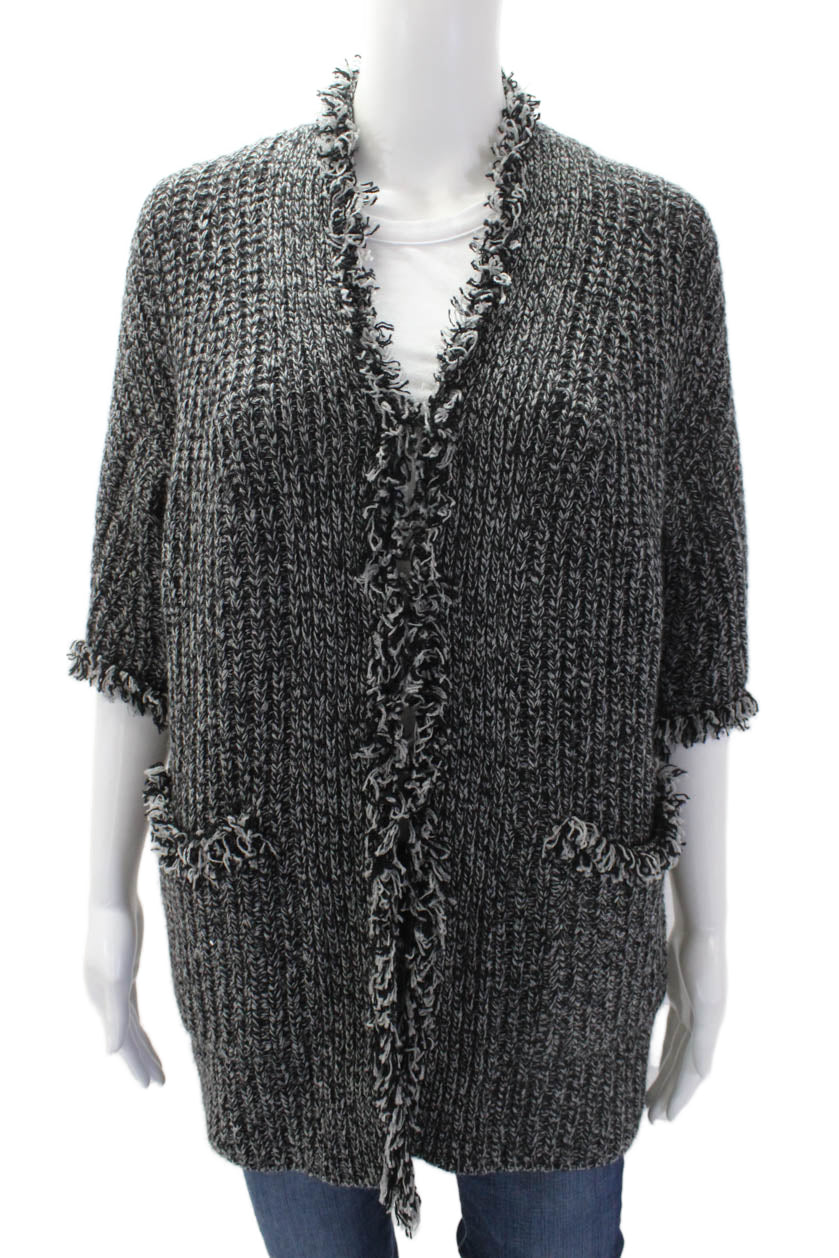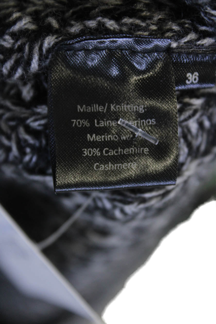 Max And Moi Womens Woven Knit Cardigan Sweater Gray Black Wool Size EUR 36