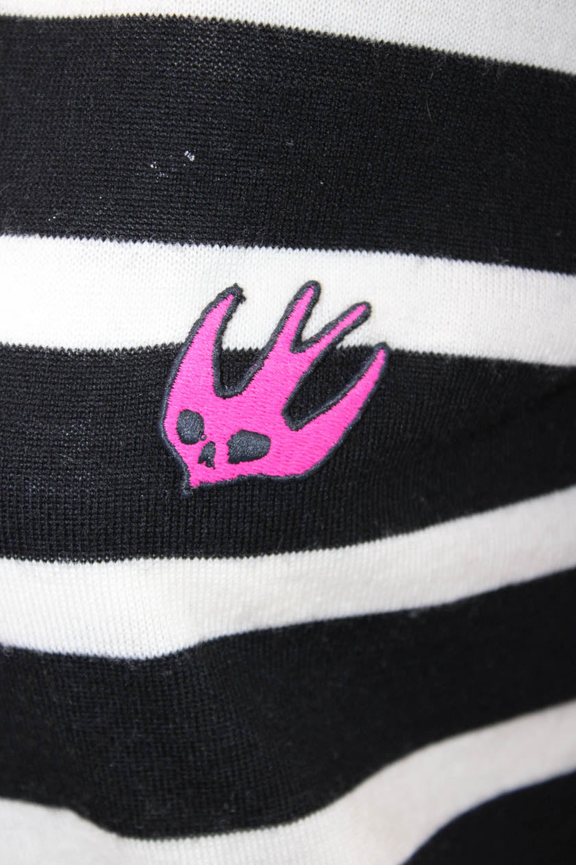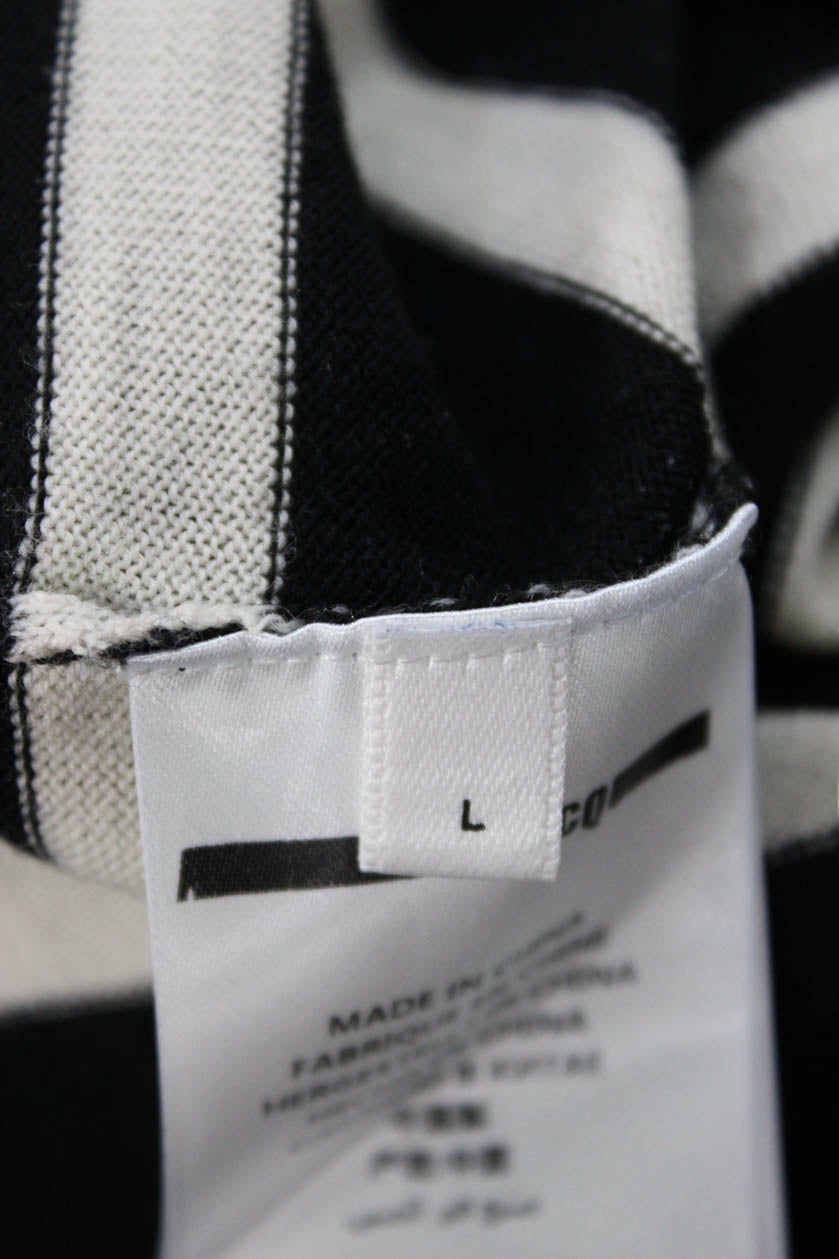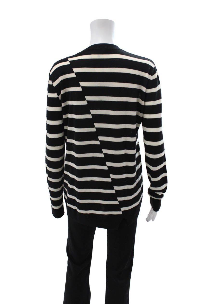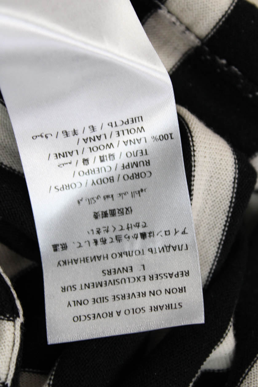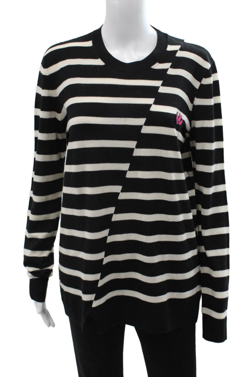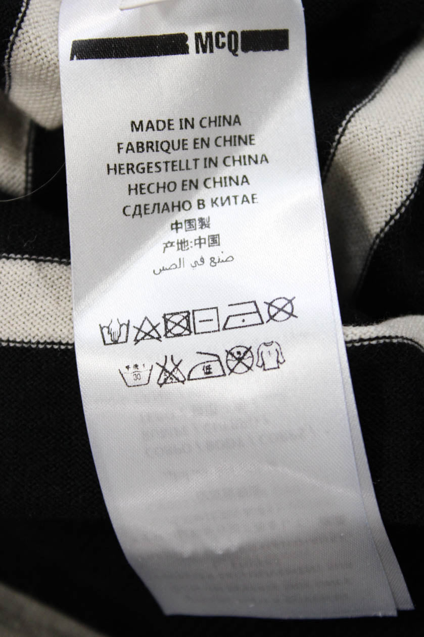 McQ Unisex Black Wool Striped Pullover Sweater Crew Neck Bird Size L