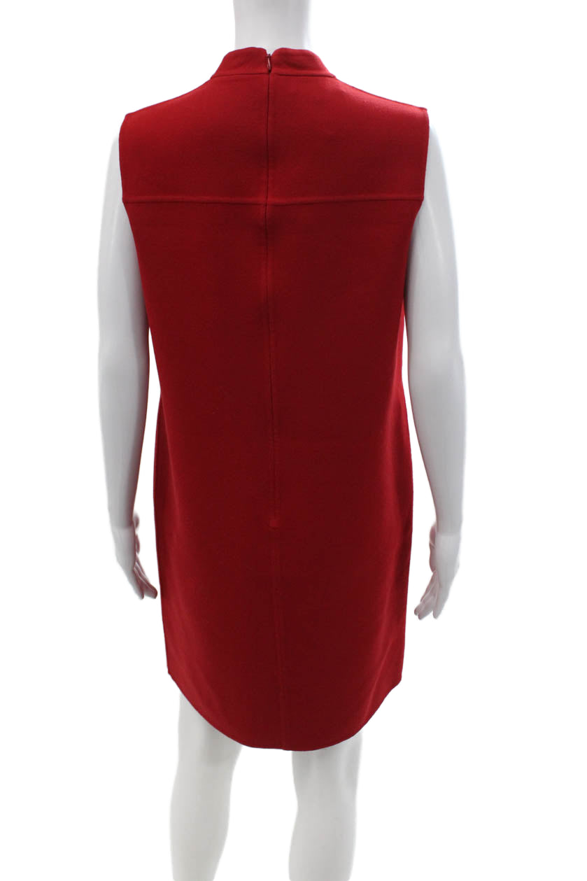 Michael Kors Collection Women Shift Dress Red Wool Sleeveless Mock Neck Size 4