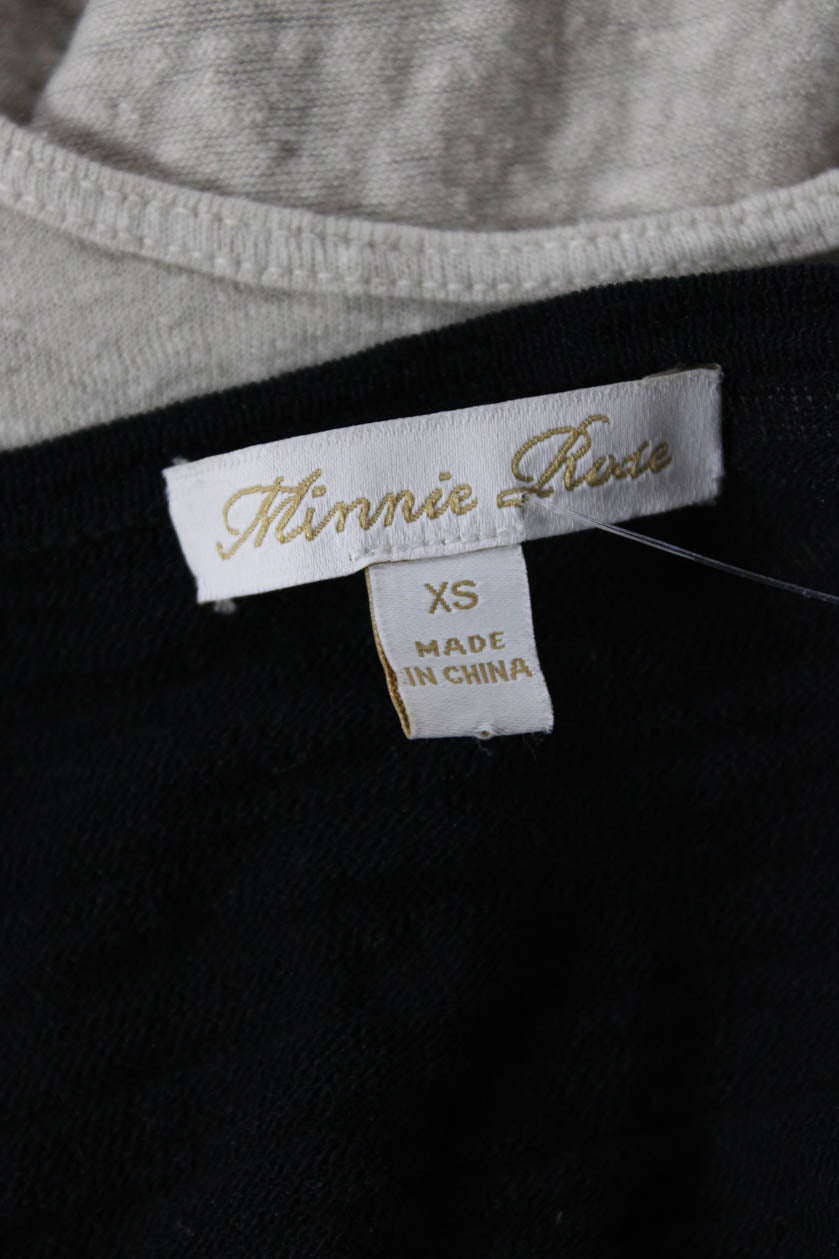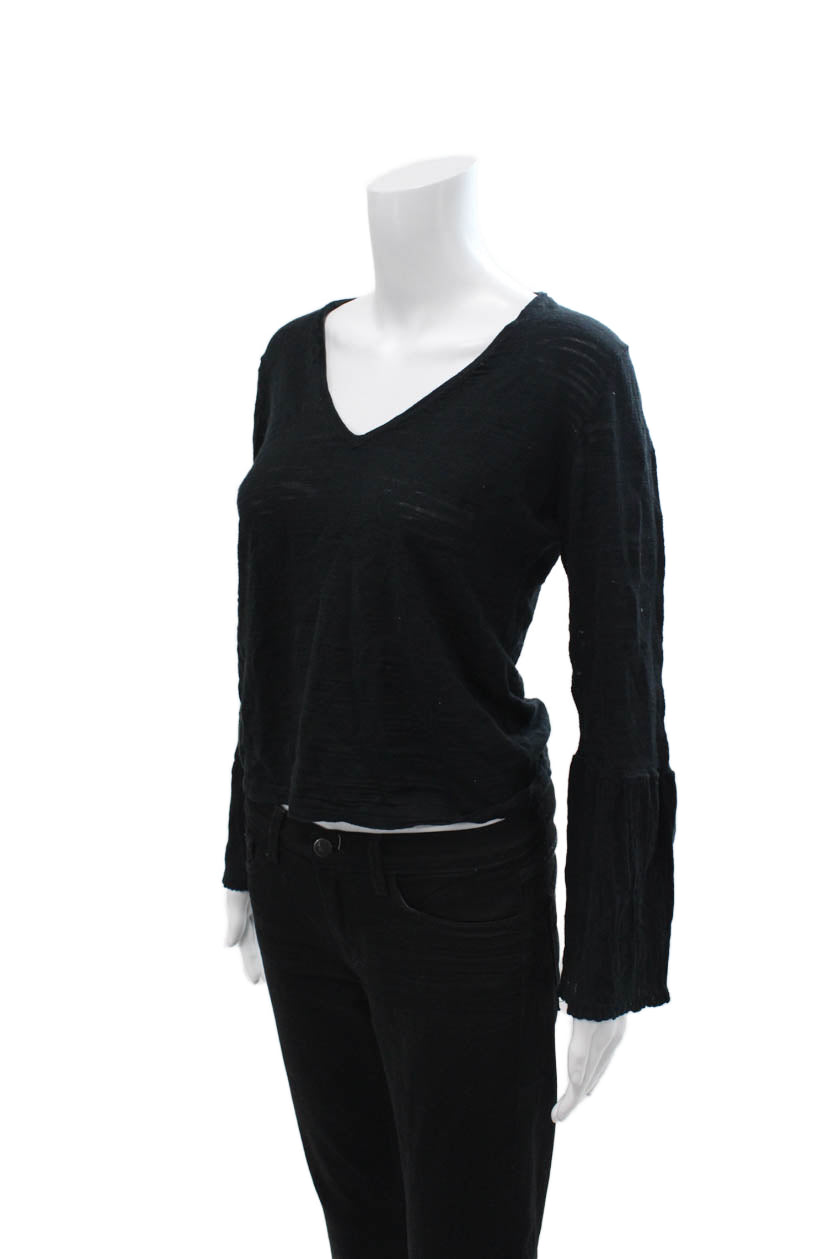 Minnie Rose Women Basic Black V-Neck Long Sleeve Top Size XS