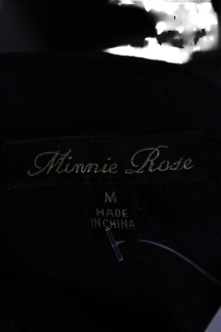 Minnie Rose Women Basic V-Neck Rayon T-Shirt Black 3/4 Sleeve Size M