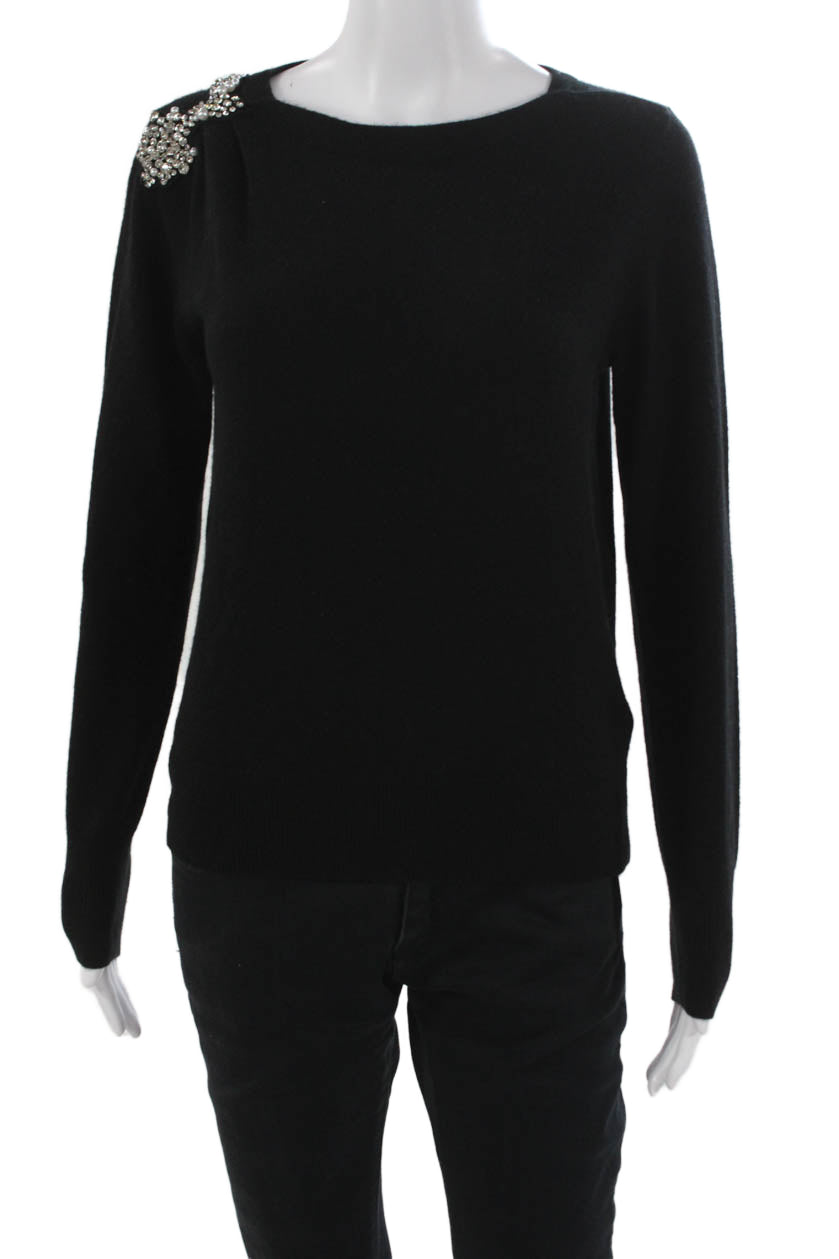 • Minnie Rose Women Pullover Cashmere Boat Neck Long Sleeve Black Size S