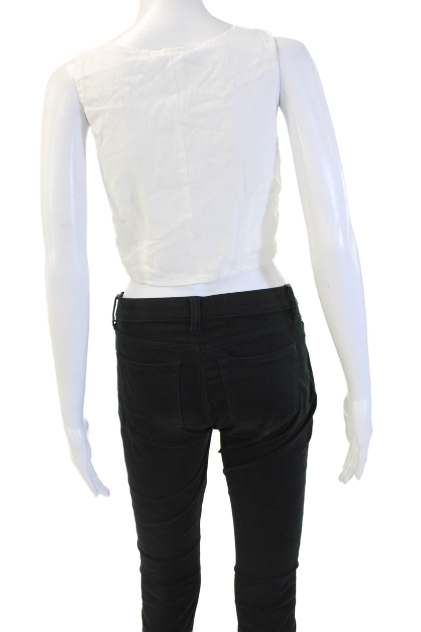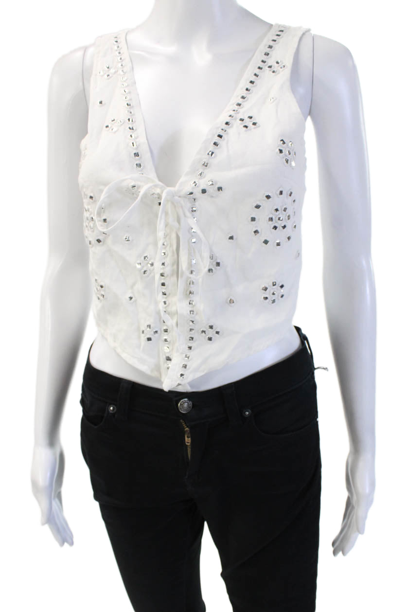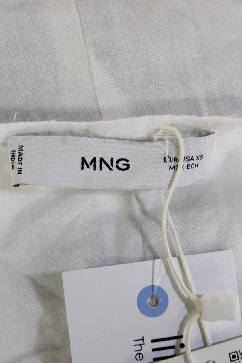 MNG Women White Cropped Tank V-Neck Cotton Drawstring Sleeveless Boho Size XS