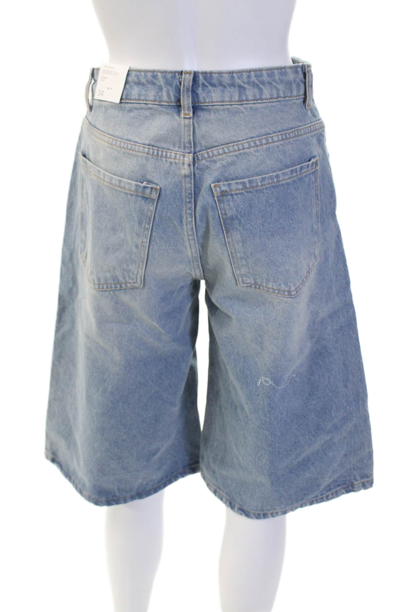 MNG Womens Light Blue Bermuda Shorts 100% Cotton Button Size 2