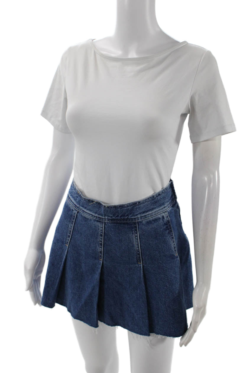 MNG Womens Side Zip Pleated Fringe Denim Mini A Line SKirt Blue Size Medium