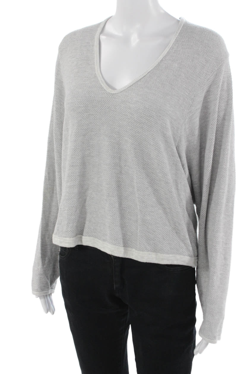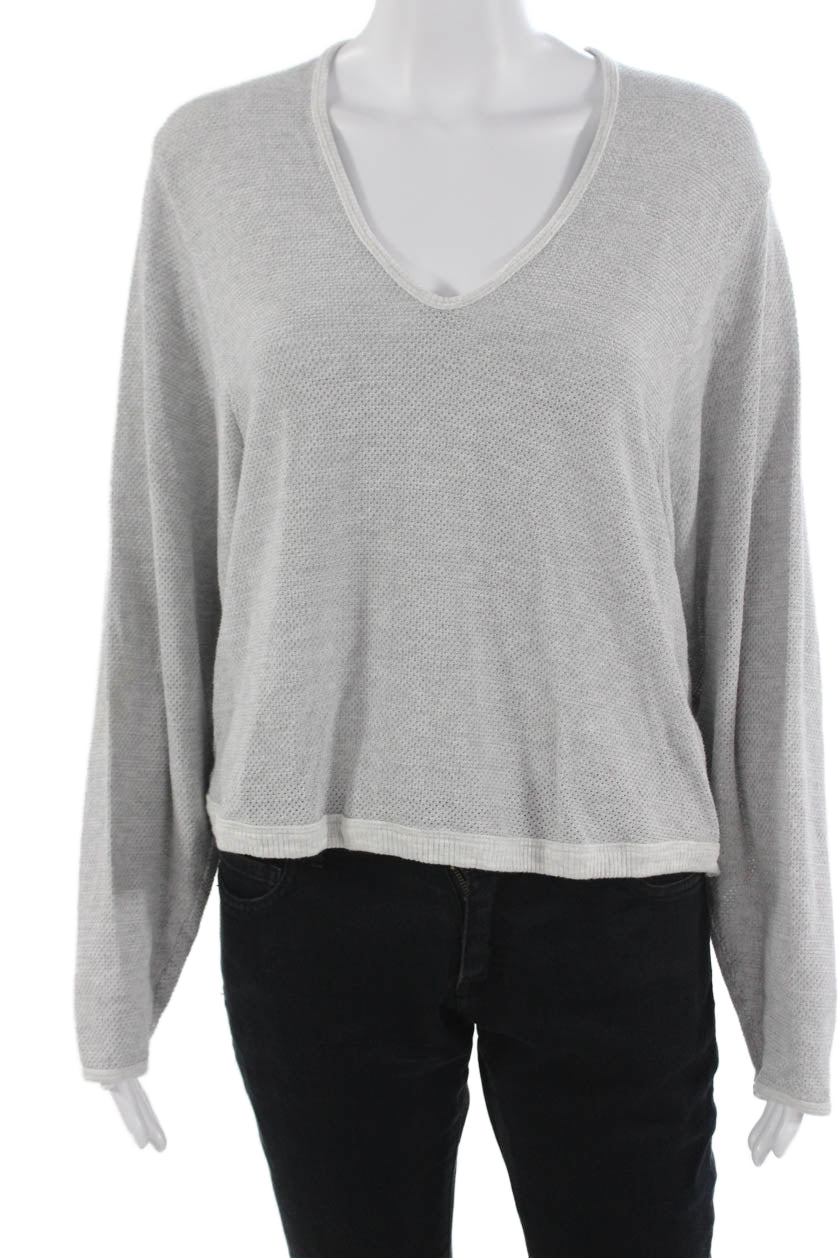 Monrow Unisex Pullover V-Neck Gray Long Sleeve Rayon Spandex Sweater Size XS