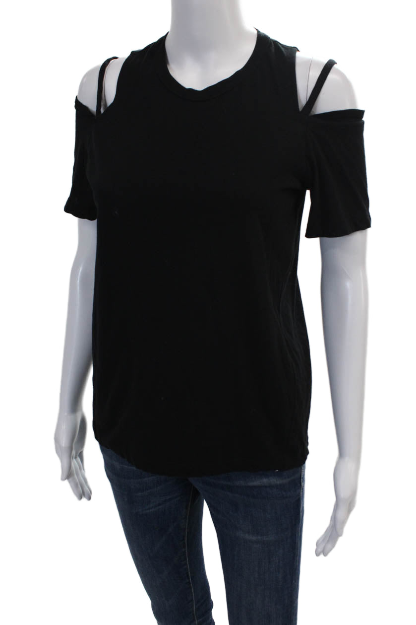 Morgane Le Fay Women's Round Short Sleeves Cold Shoulder T-Shirt Black Size S