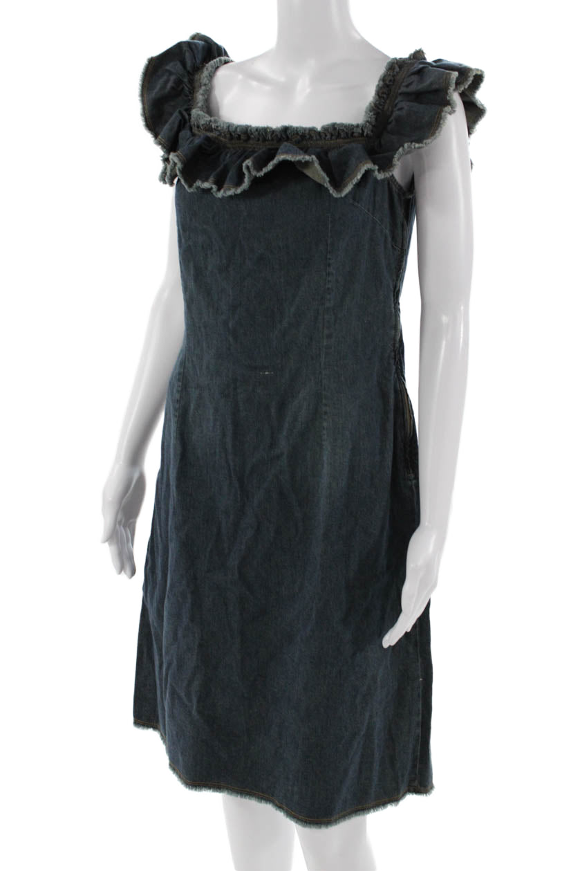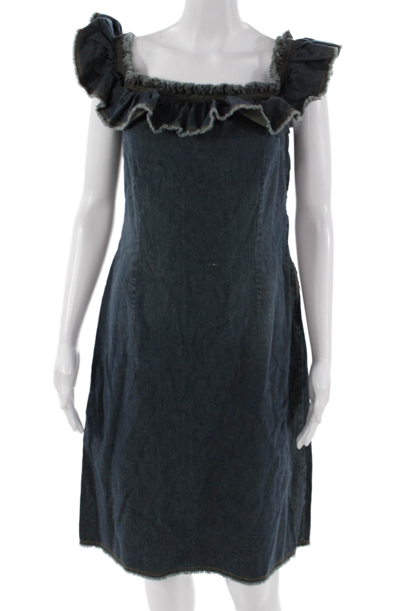 Moschino Women Shift Dress Dark Blue Sleeveless Zip Cotton Size 1