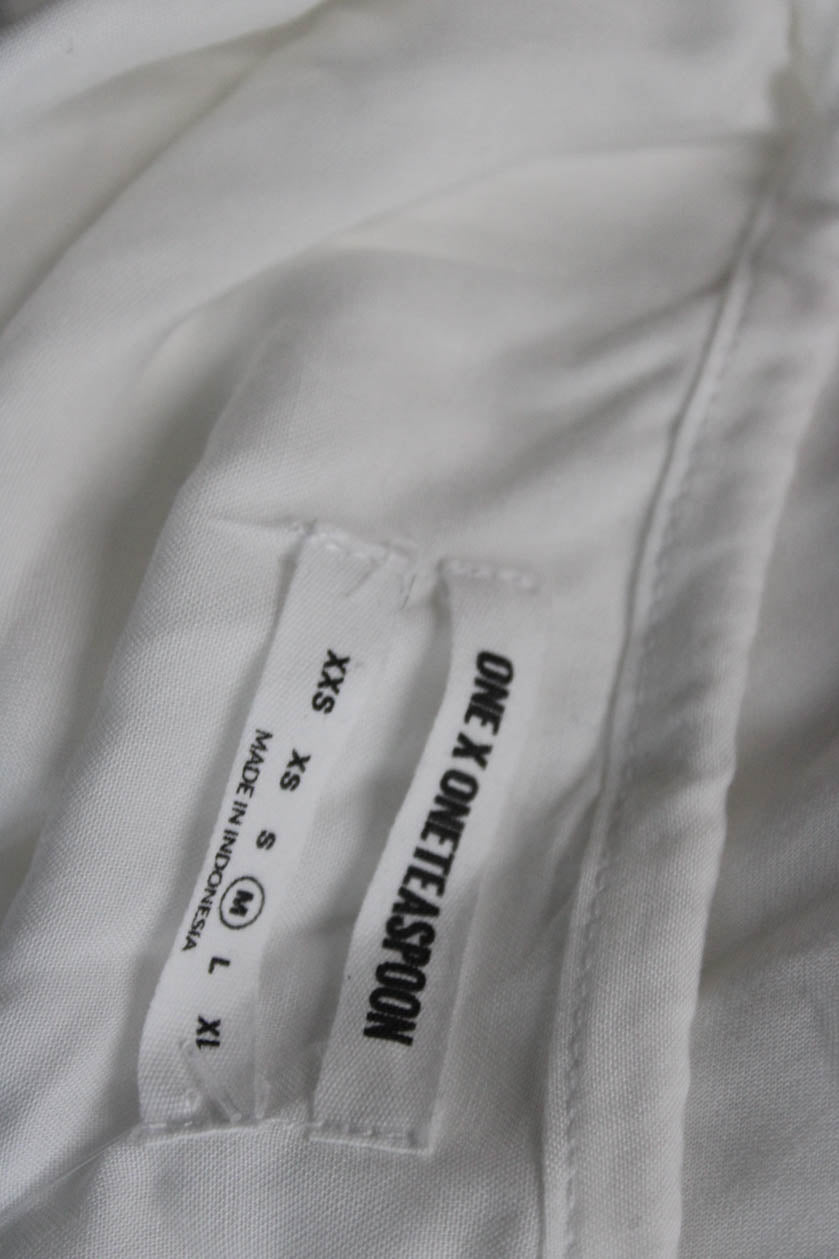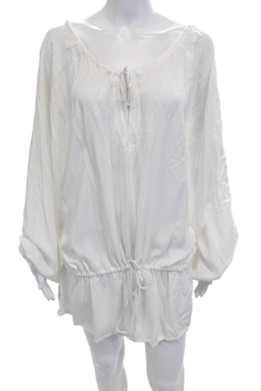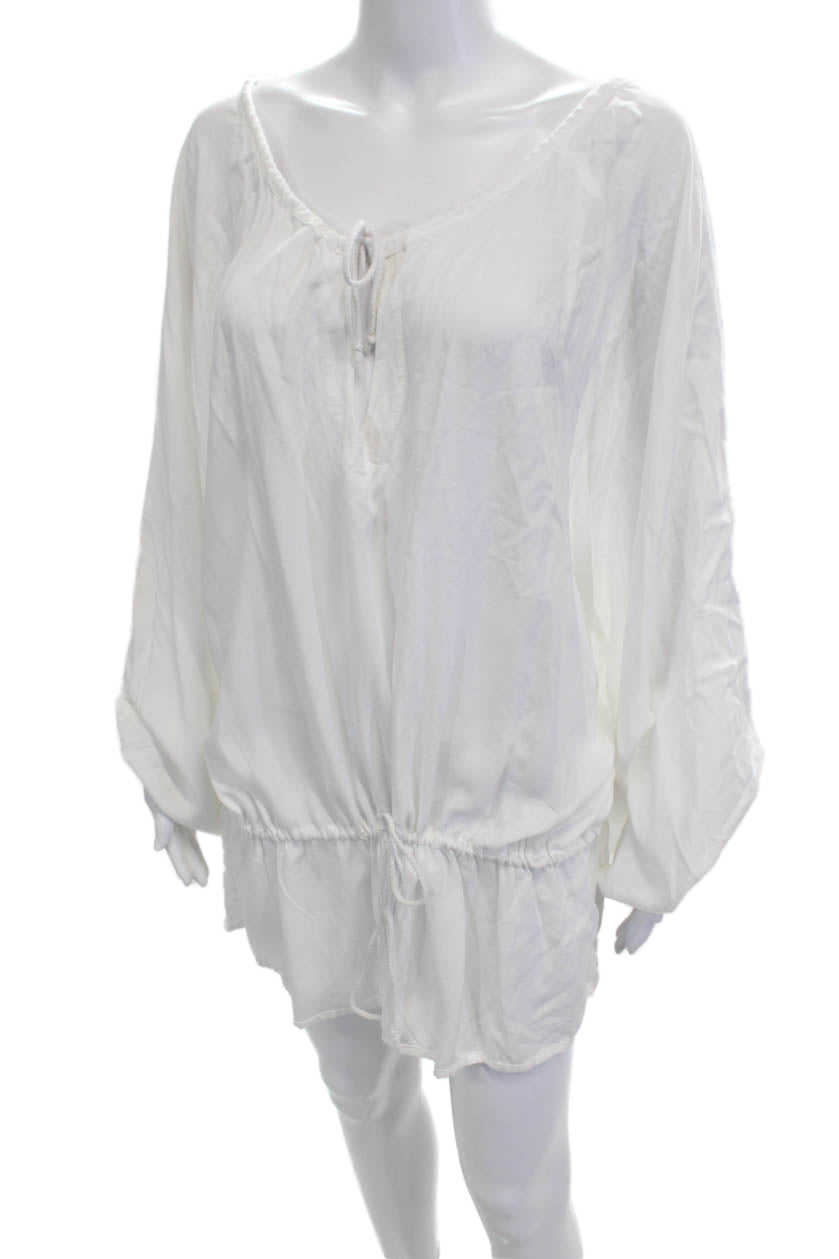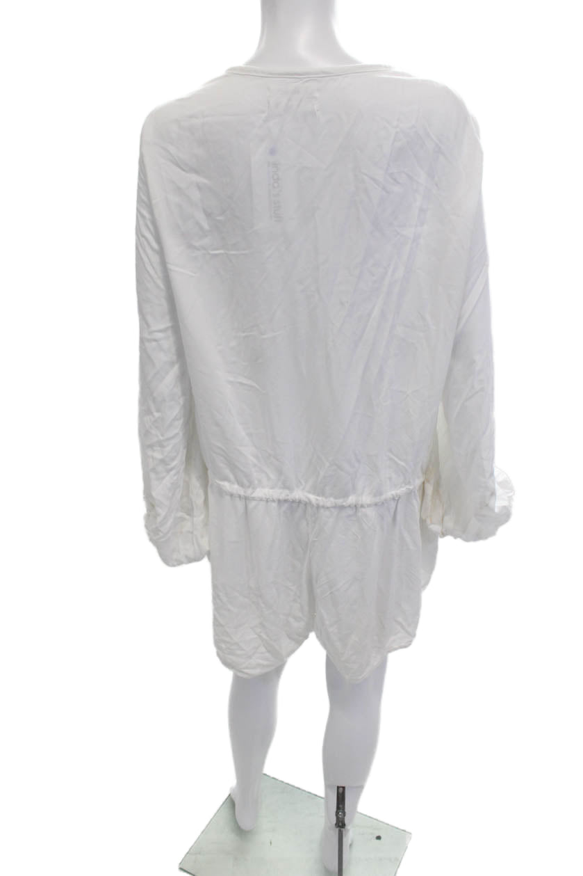 One Teaspoon Women White Viscose Long Sleeve Tunic Drawstring Round Neck Size M