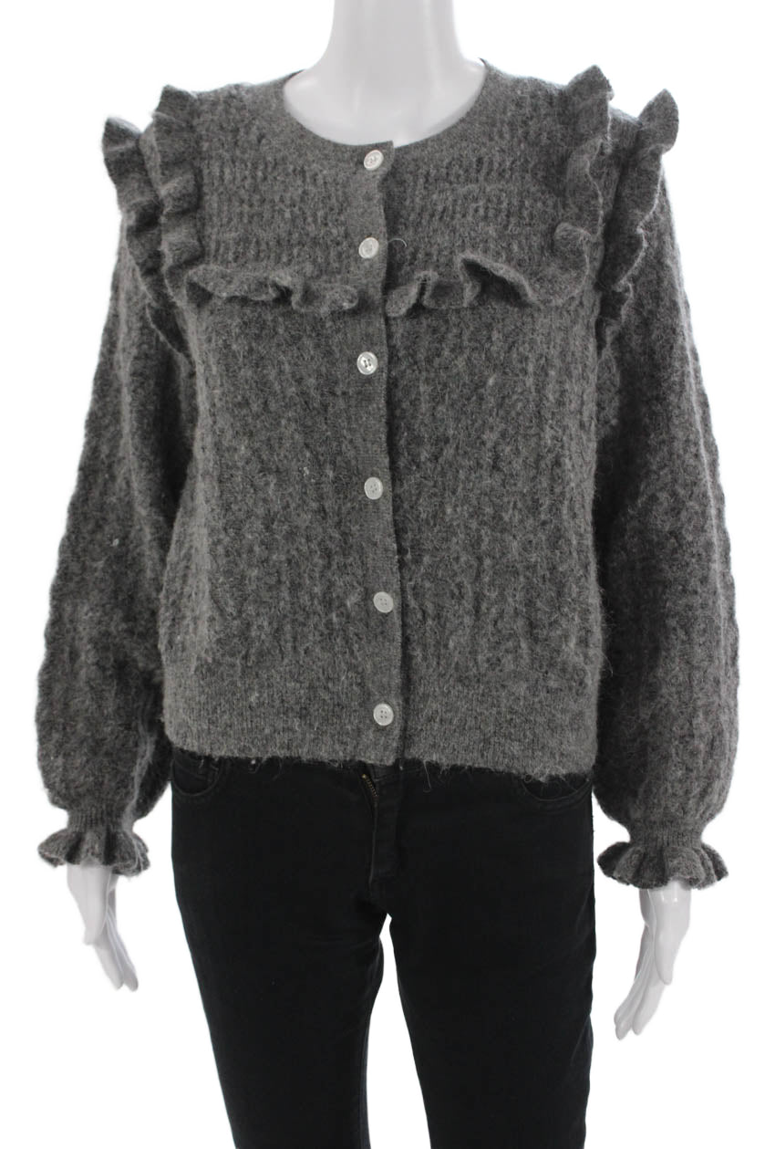 & Other Stories Womens Cardigan Dark Gray Crew Neck Size S