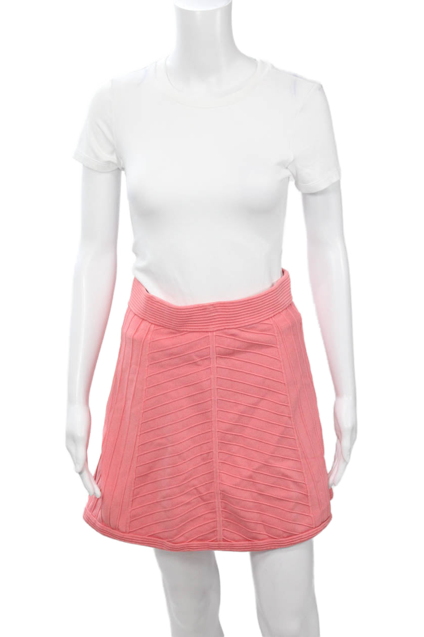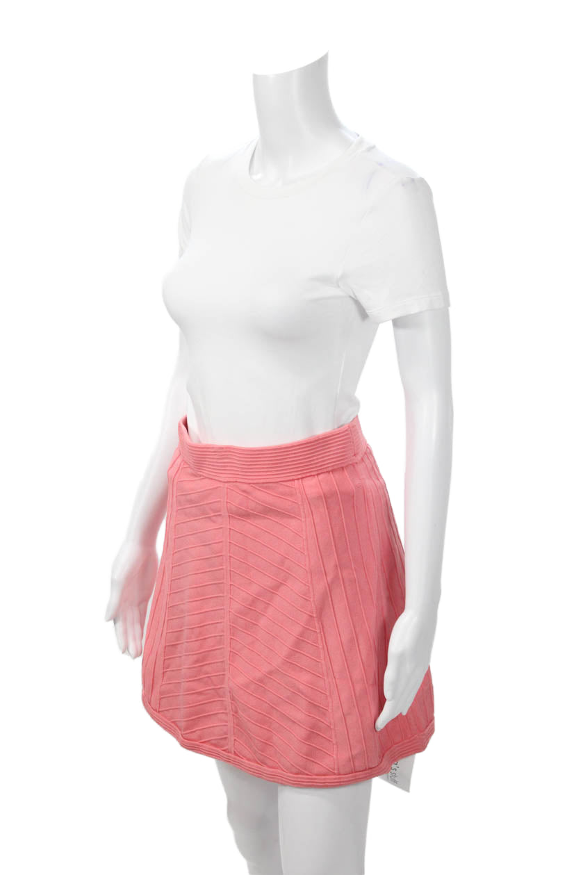 Parker Womens A-Line Bandage Pink Striped Skirt Rayon Nylon Size M