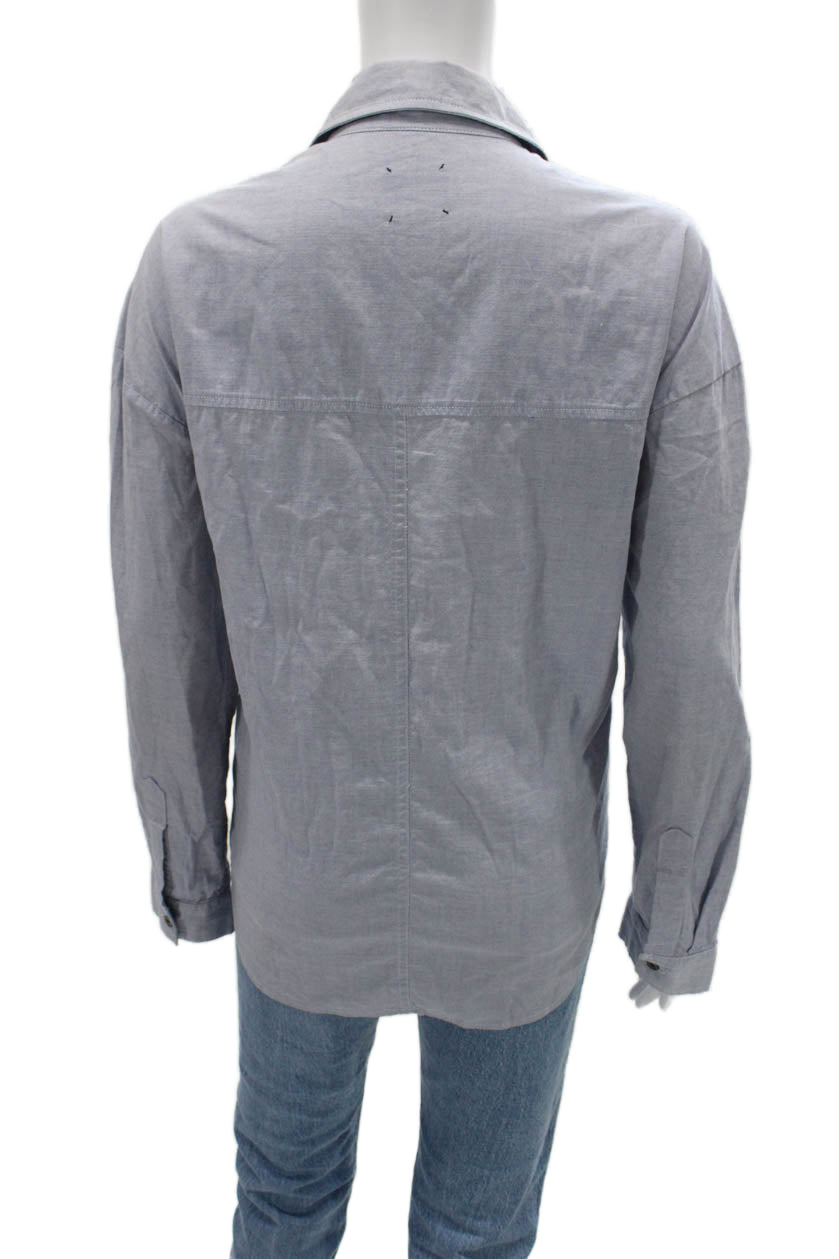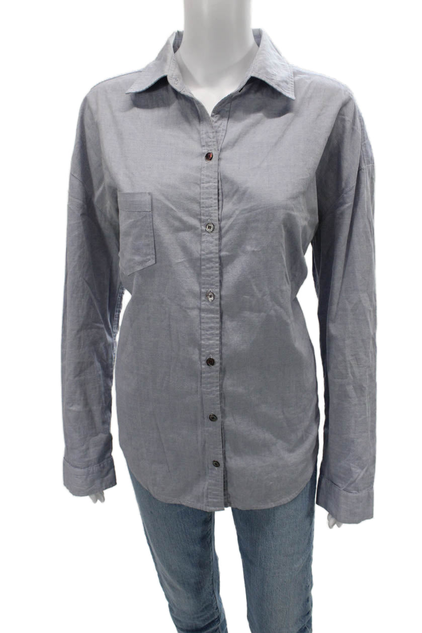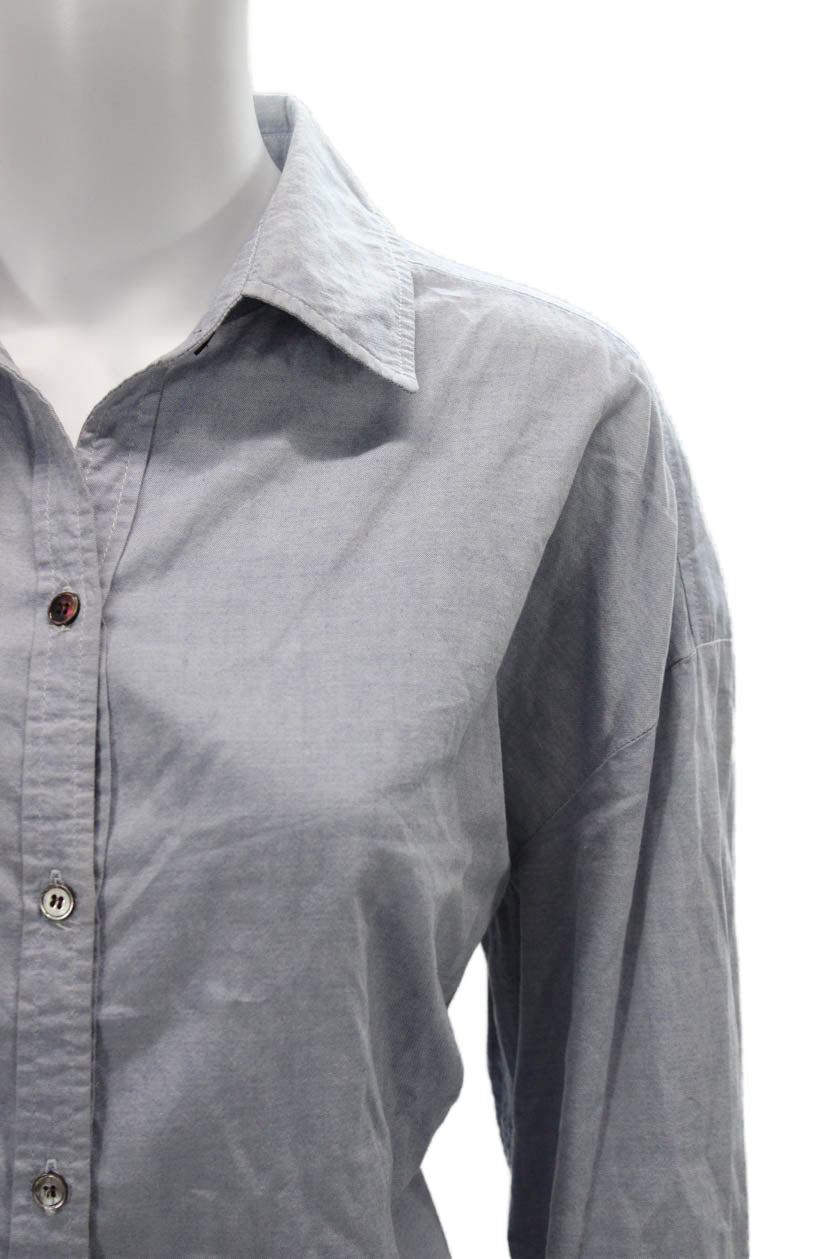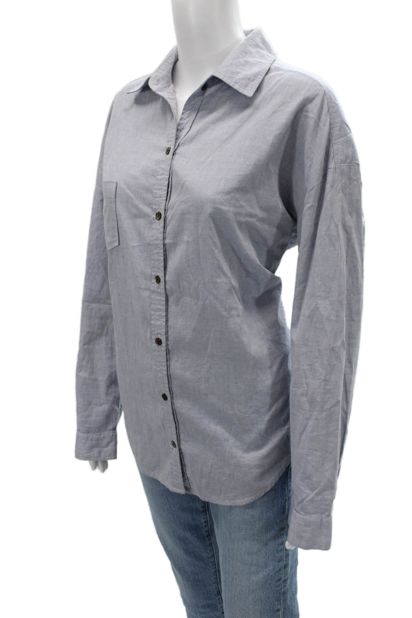 PJK Patterson J Kincaid Women Gray Cotton Collared Button-Up Long Sleeve Size S