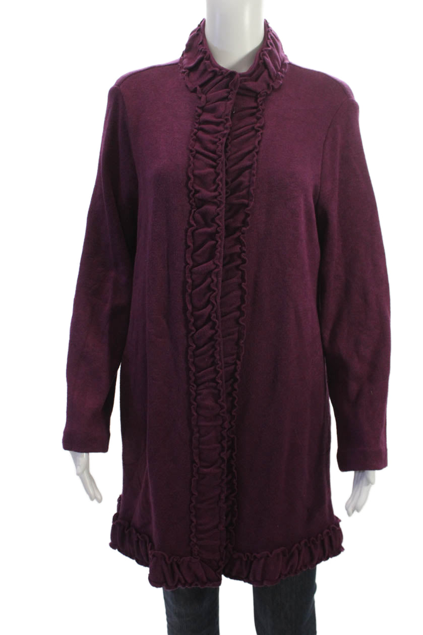Pure Essence Women Collared Long Sleeve Purple Coatigan Size L