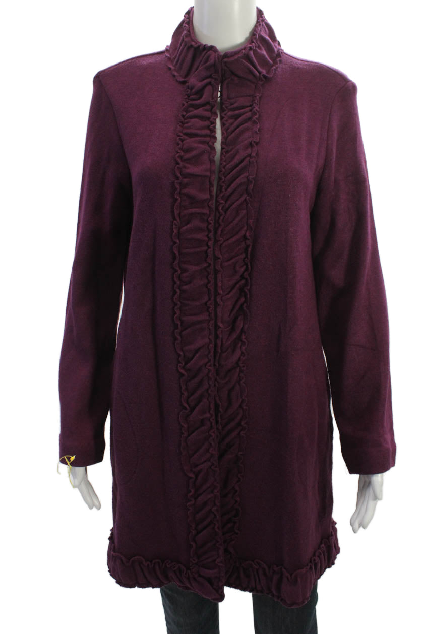Pure Essence Womens Purple High Neck Long Sleeve Coatigan Size M