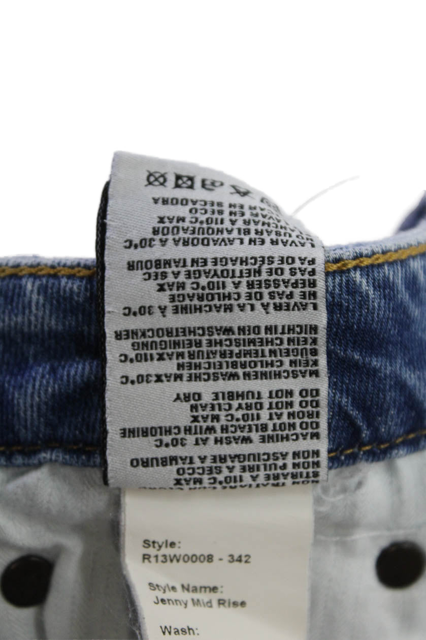 R13 Womens Zipper Fly Mid Rise Fringe Skinny Jeans Blue Denim Size 25
