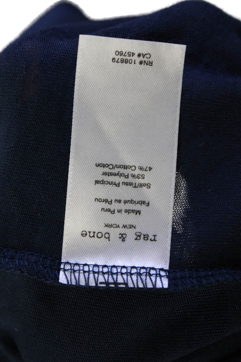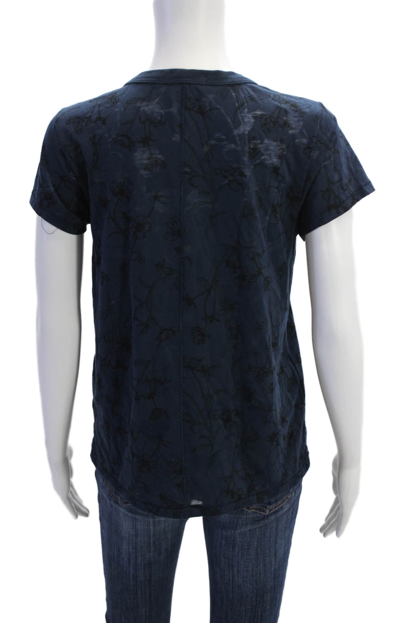 Rag & Bone Womens Crew Neck Short Sleeve Floral Print Top Dark Blue Size M