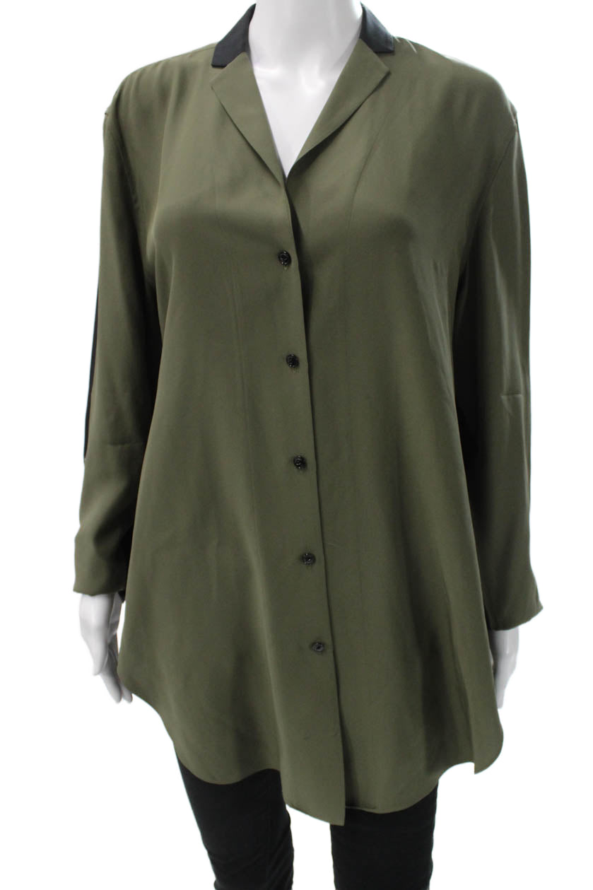 Rag & Bone Womens Green Collared Tunic Button-Up Polyester Long Sleeve Size L