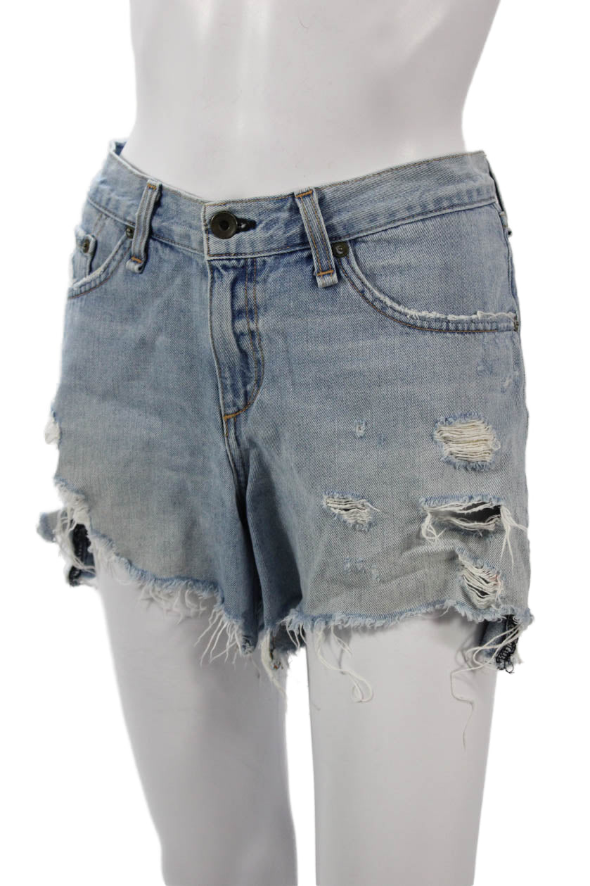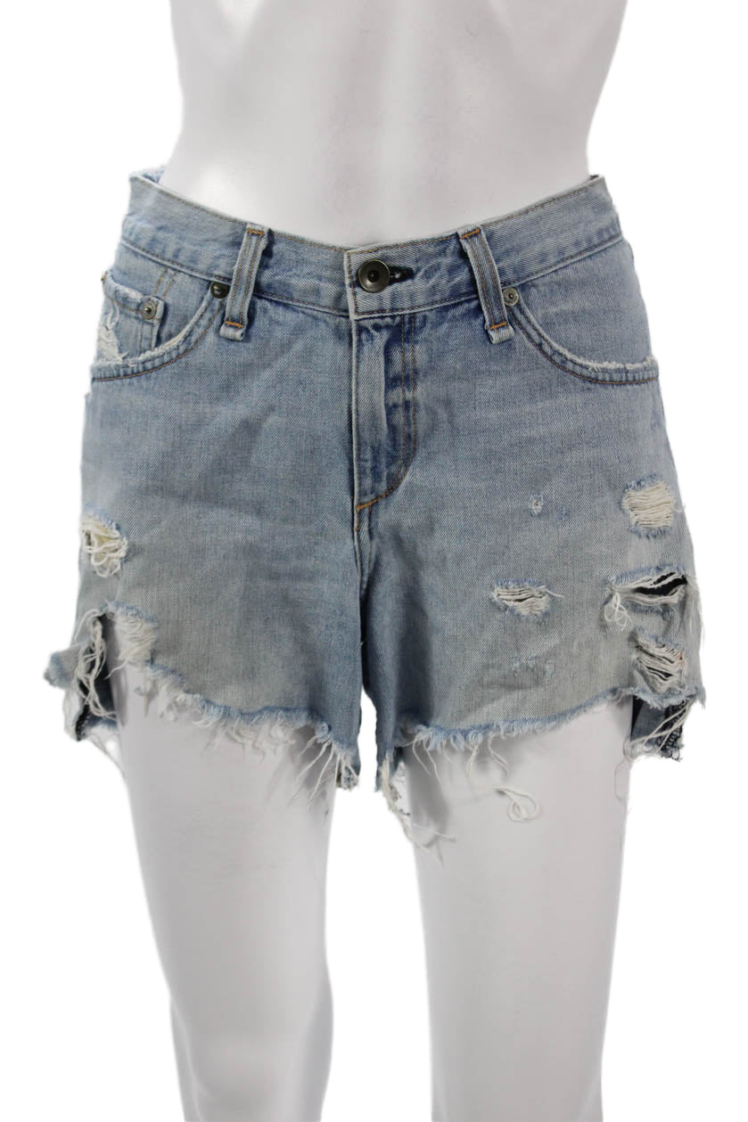 Rag & Bone Womens Light Blue Cotton Solid Button Shorts Grunge Size 29