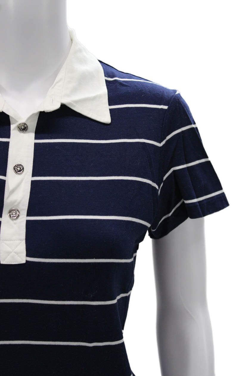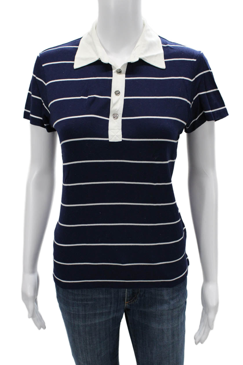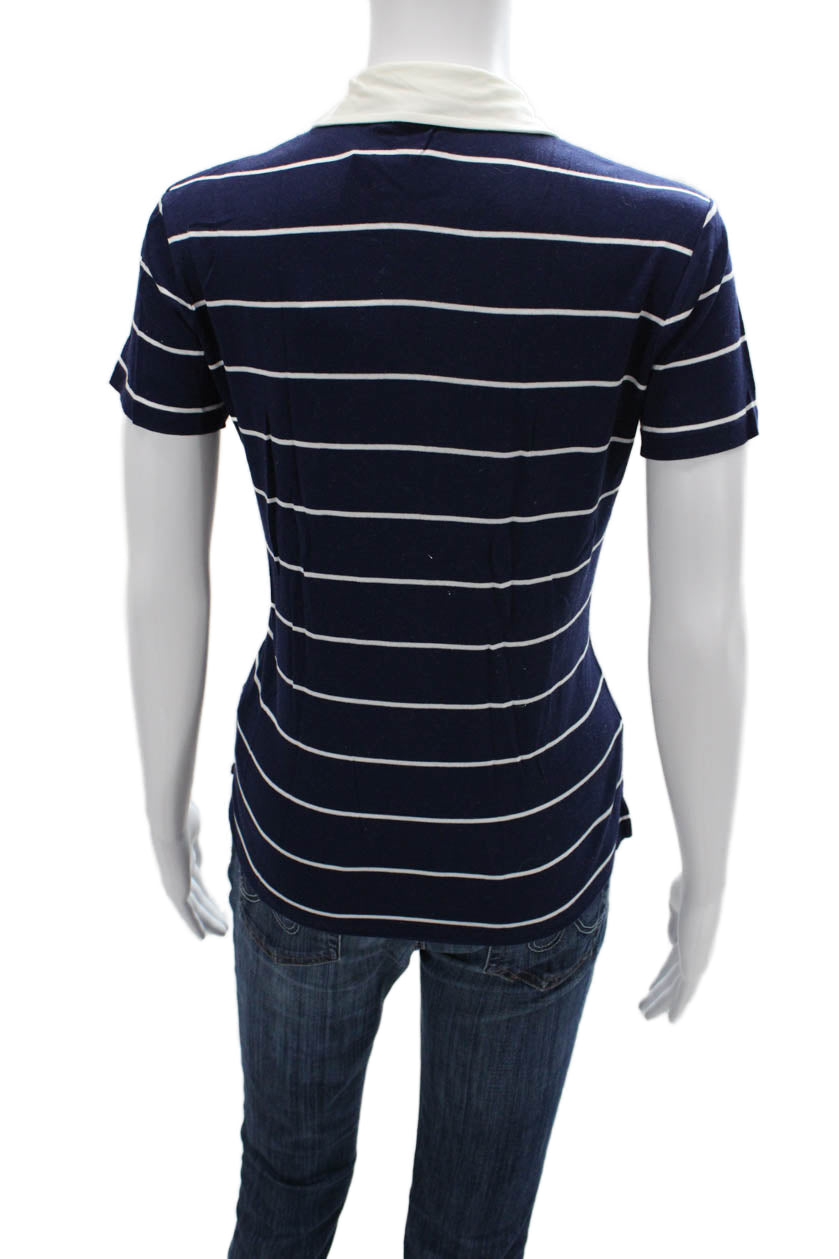 Ralph Lauren Golf Women Short Sleeve Striped Collared Polo Dark Blue Size M