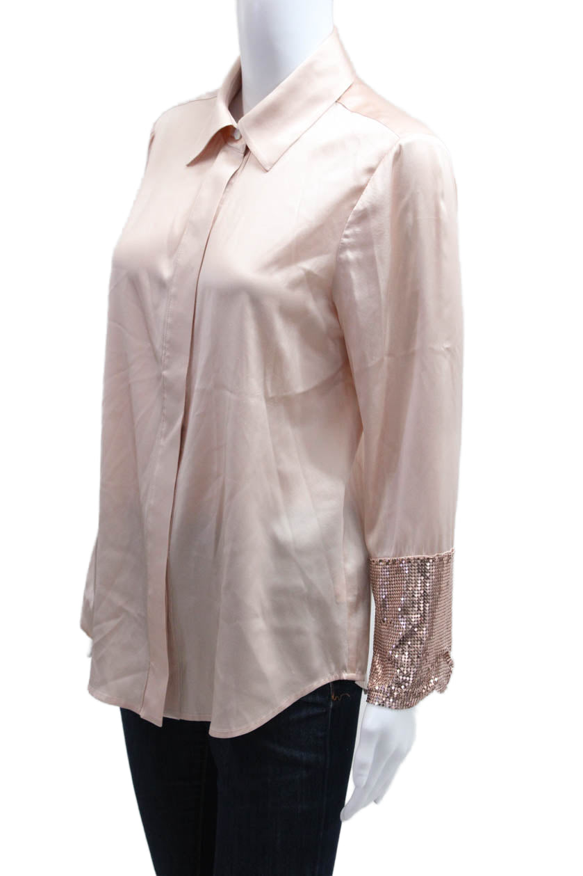 Ramy Brook Women Beige Collared Long Sleeve Silk Blend Button Up Blouse Size M