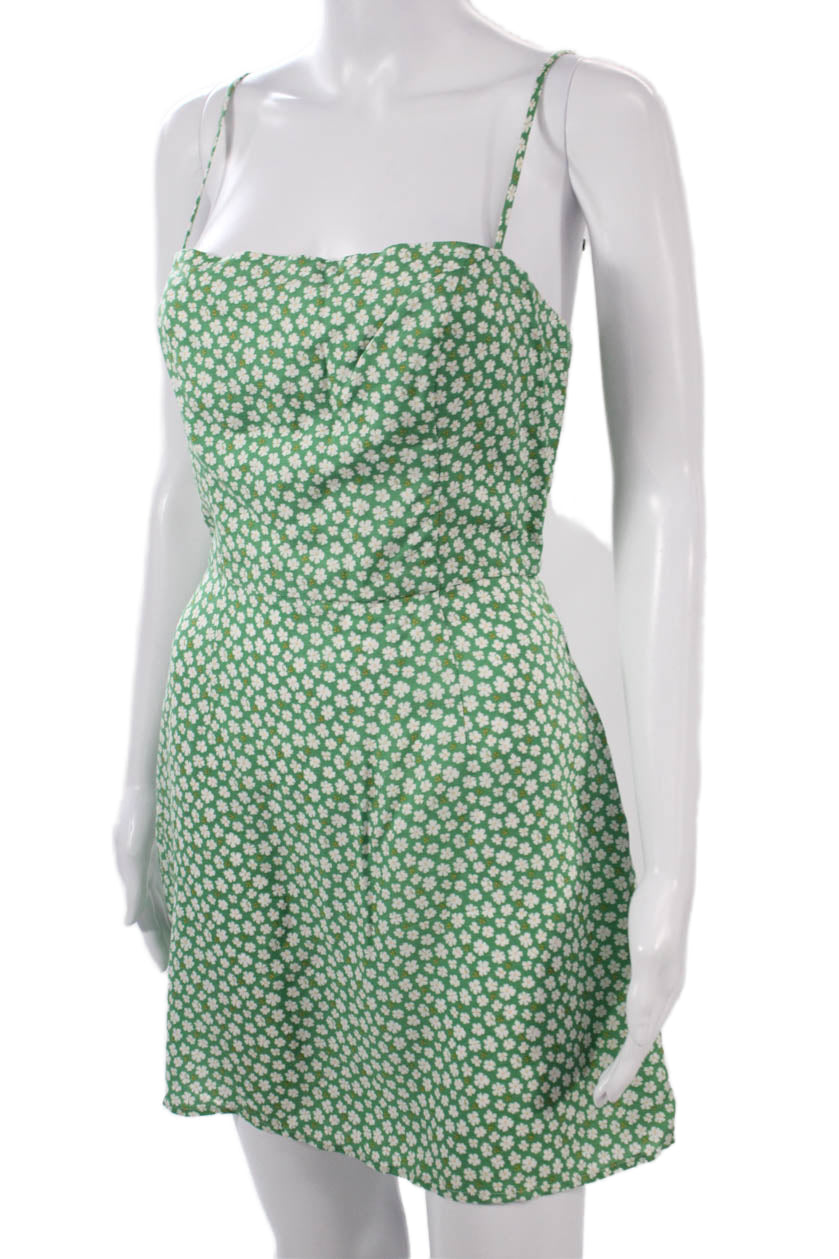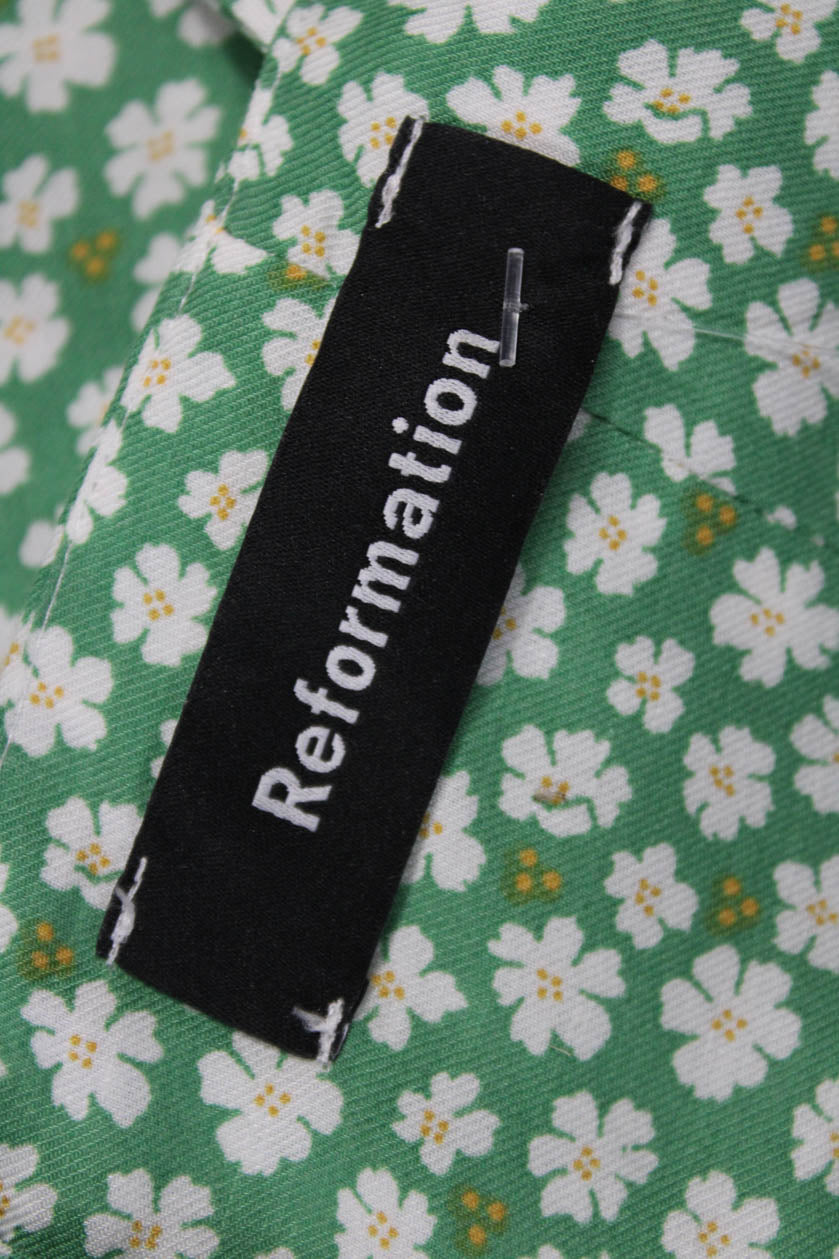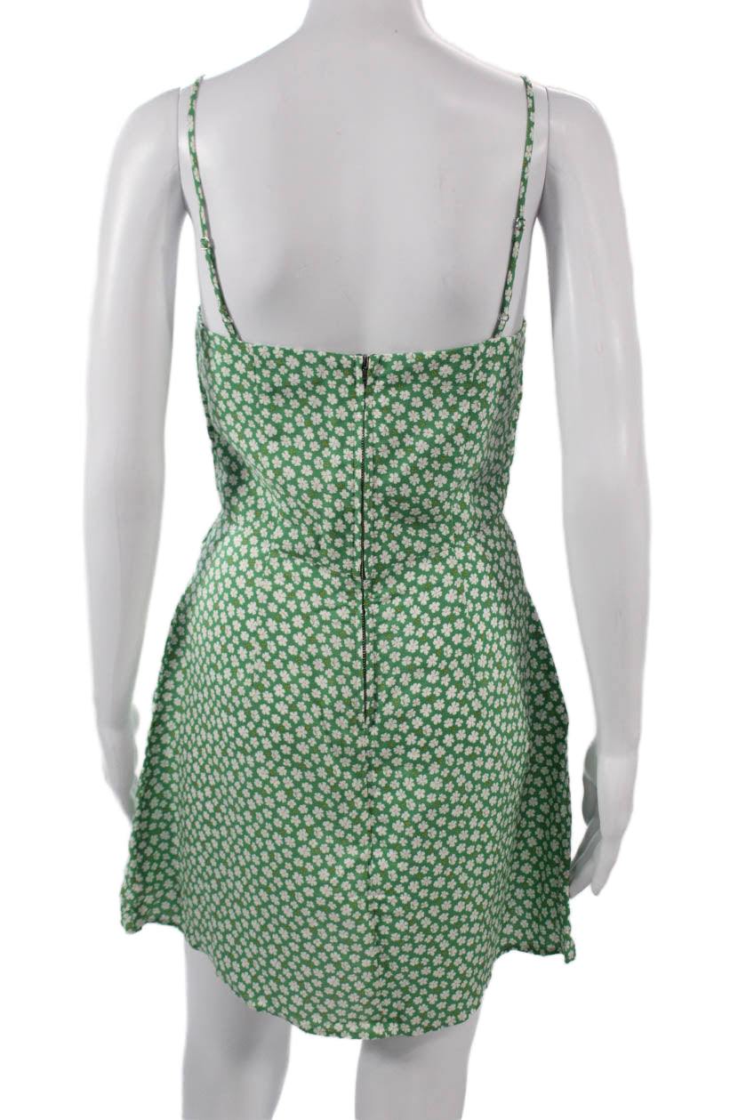 Reformation Women A-Line Mini Sundress Green Floral Tencel Linen Zip Size 4