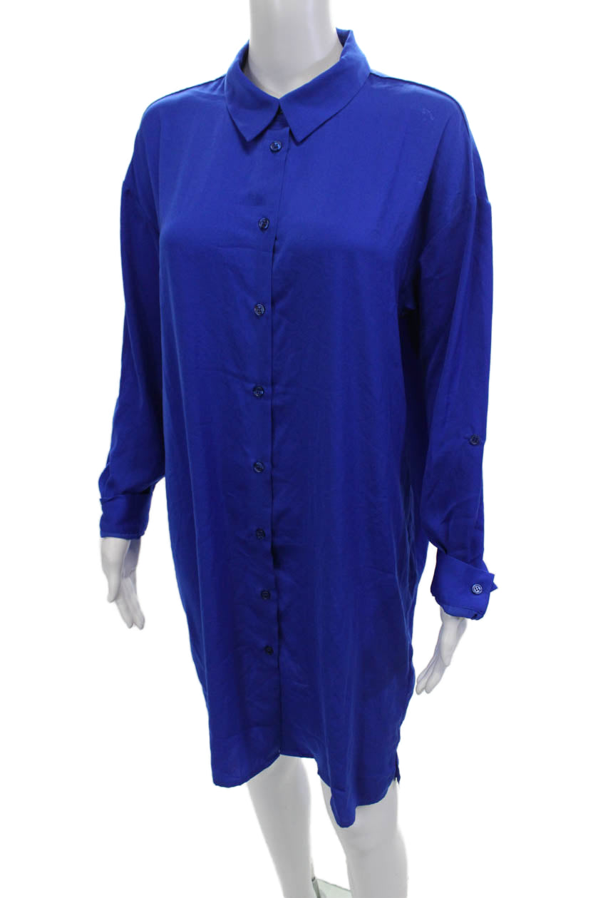 Renuar Women Shirt Dress Blue Collared Button Long Sleeve Polyester Size M