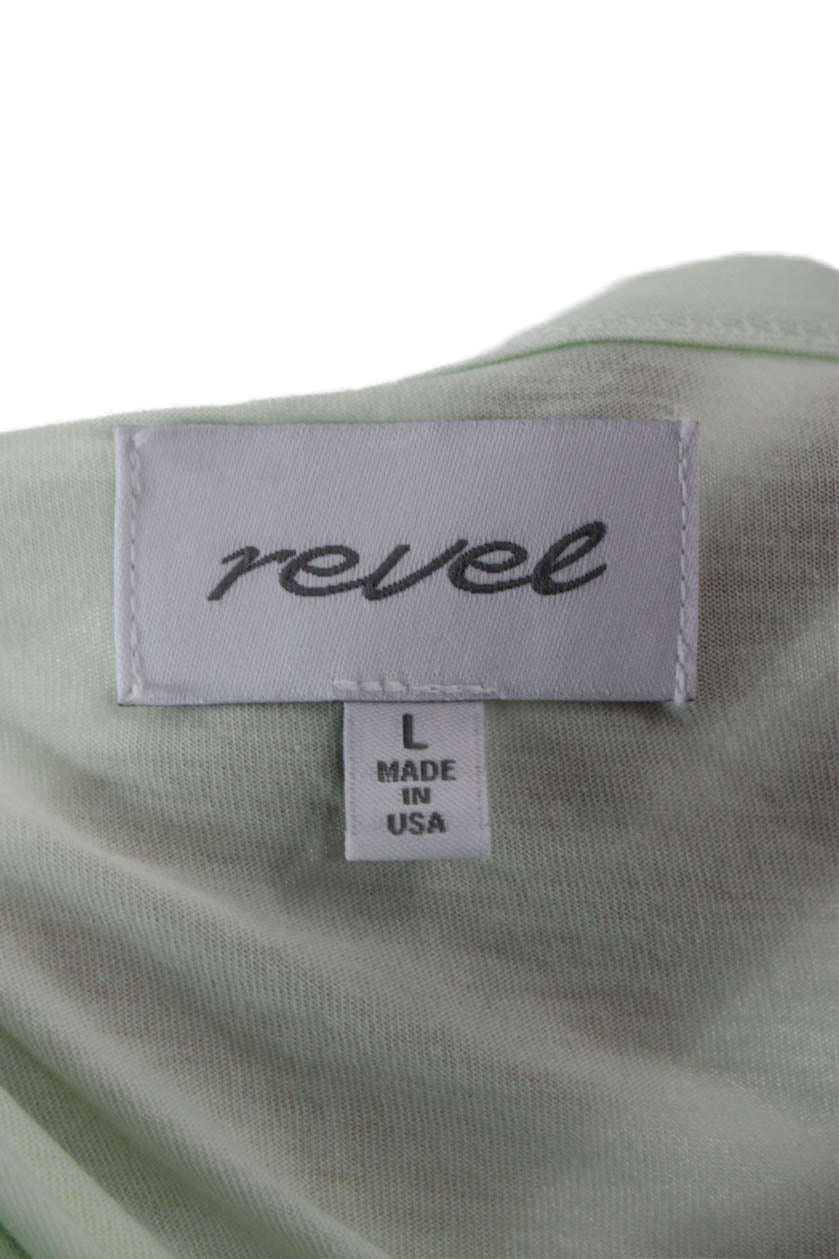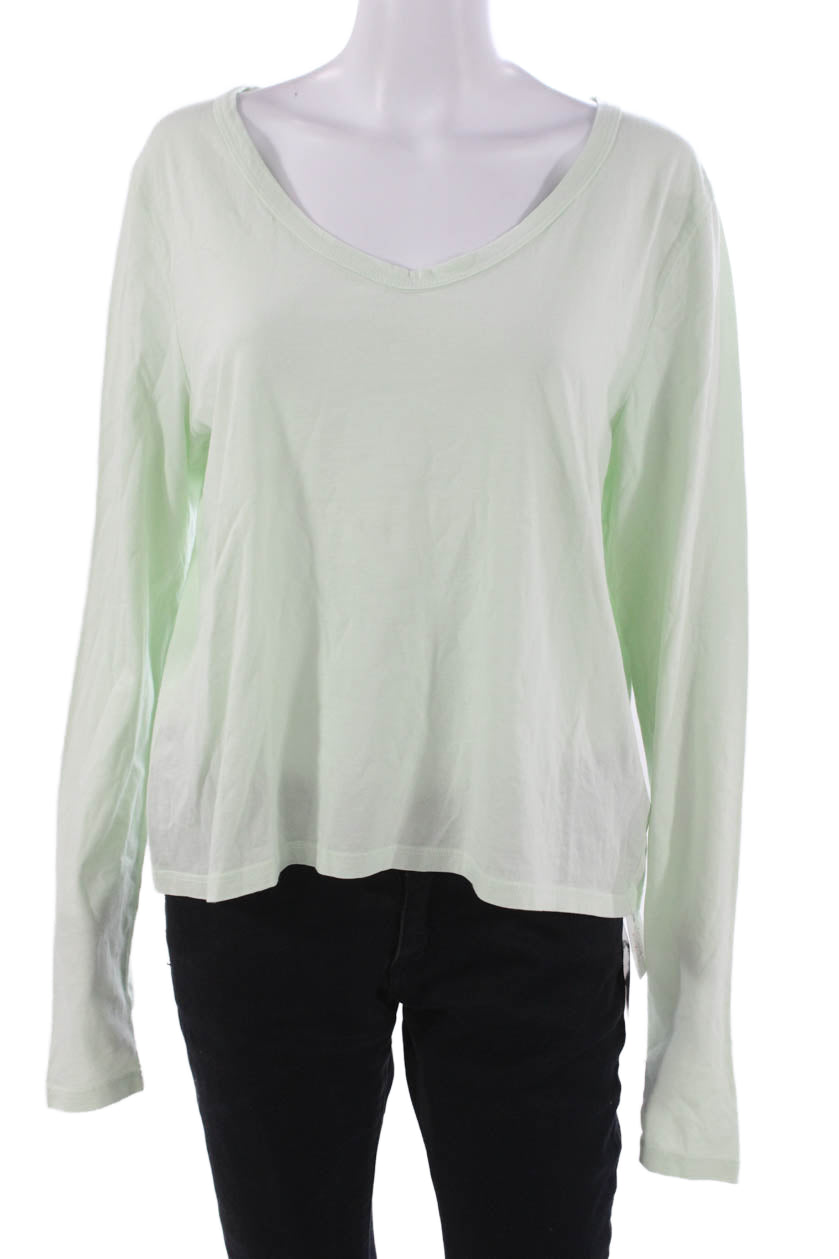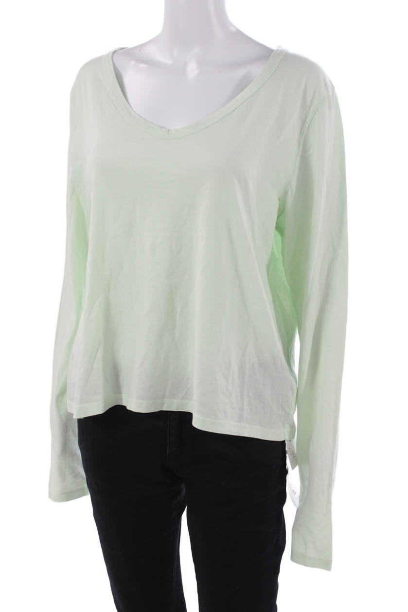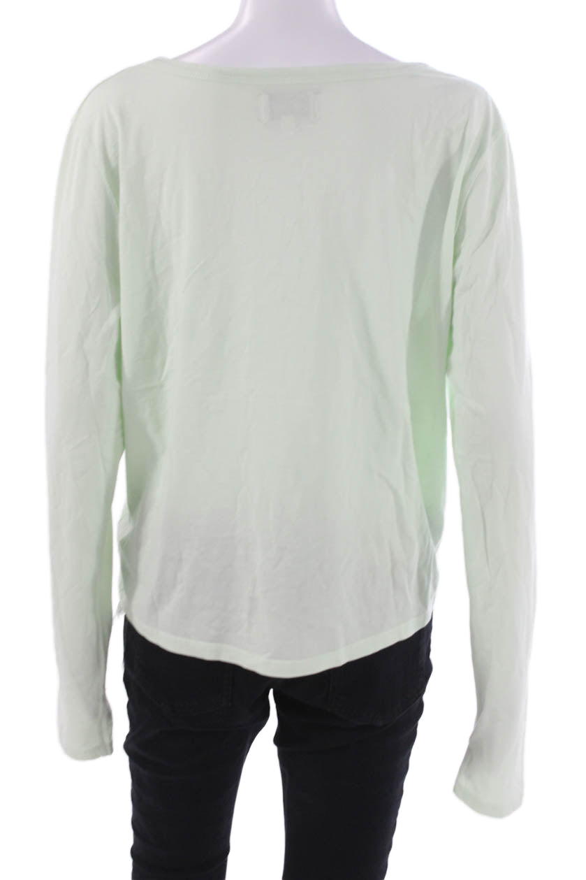 Revel New York Womens Green Cotton V-Neck Long Sleeve Basic T-Shirt Size L