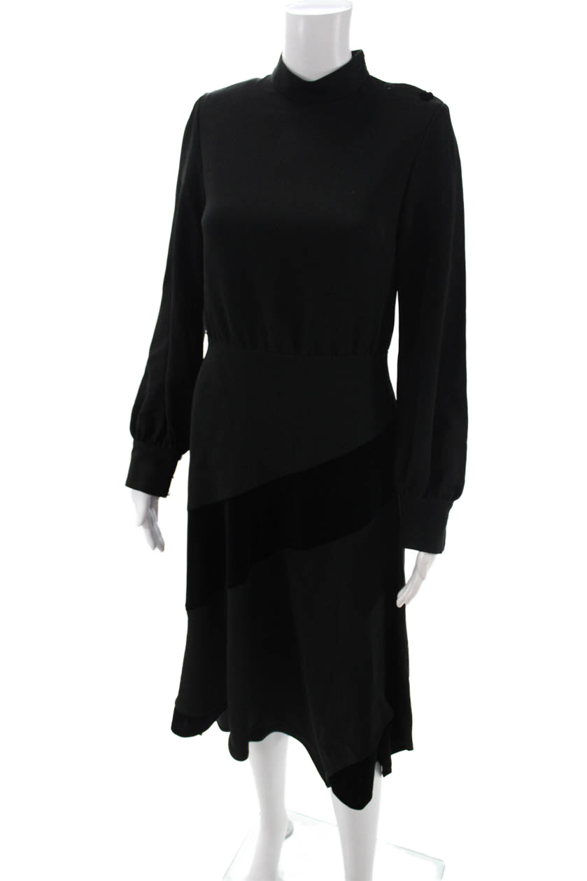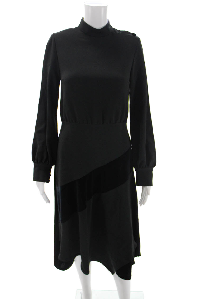Rickie Freeman Teri Jon Women Black Aline Dress Mockneck Sleeve Midi Size 4