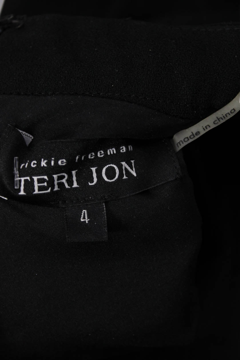 • Rickie Freeman Teri Jon Women Black Aline Dress Mockneck Sleeve Midi Size 4