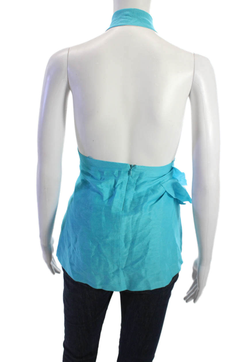 Robert Rodriguez Black Label Women Blue Linen Silk Sleeveless Blouse Size 10
