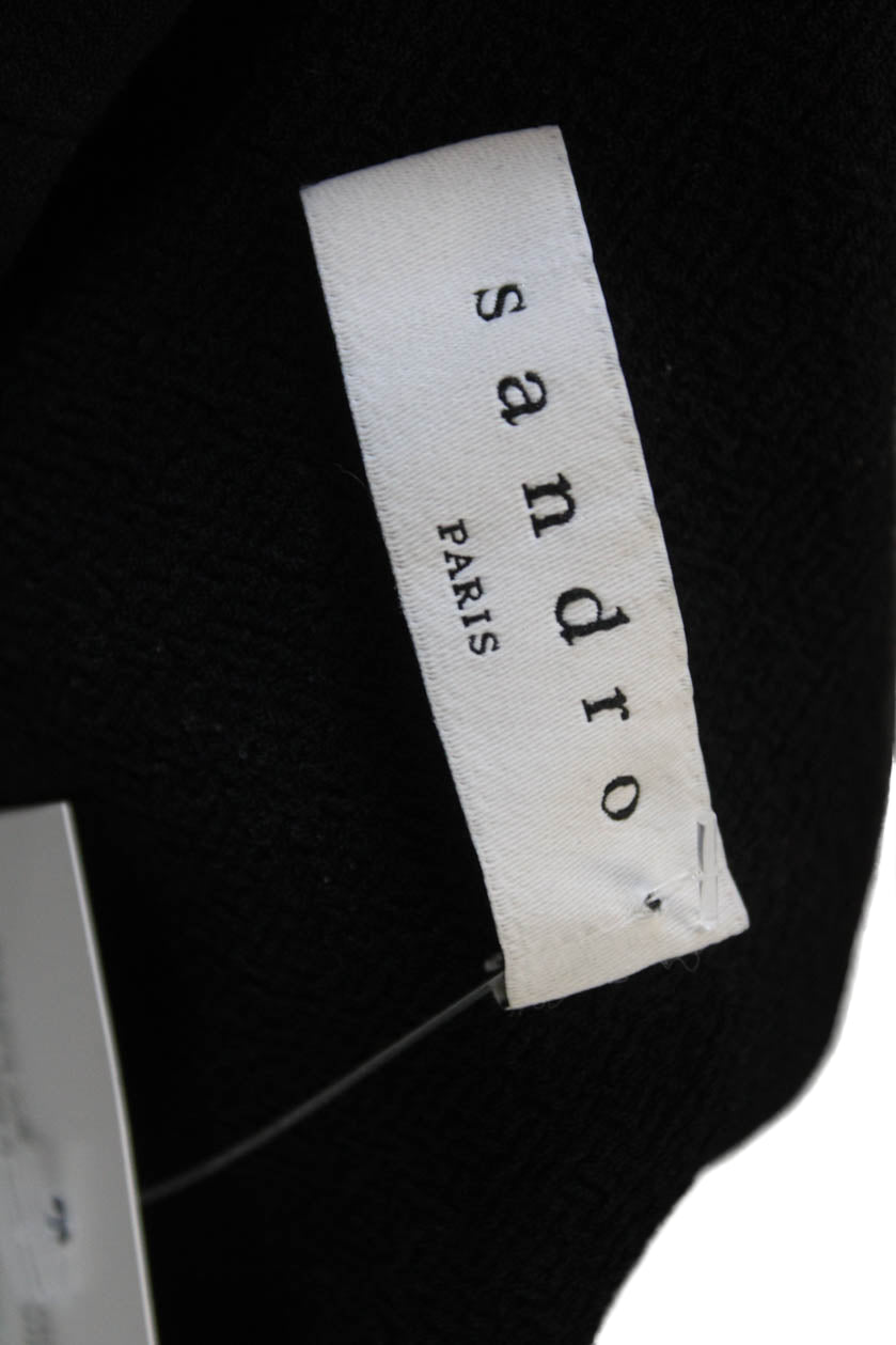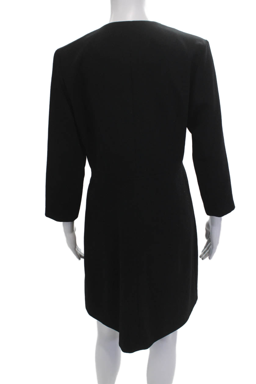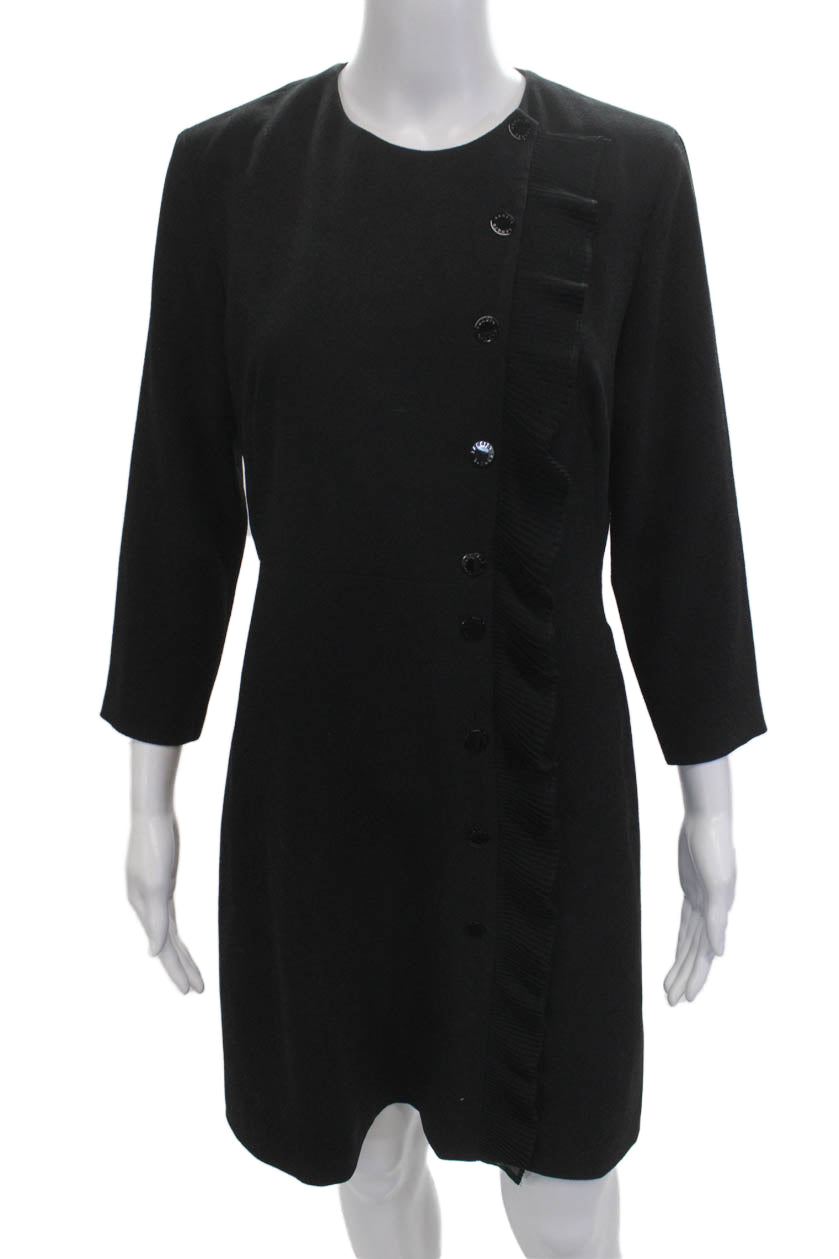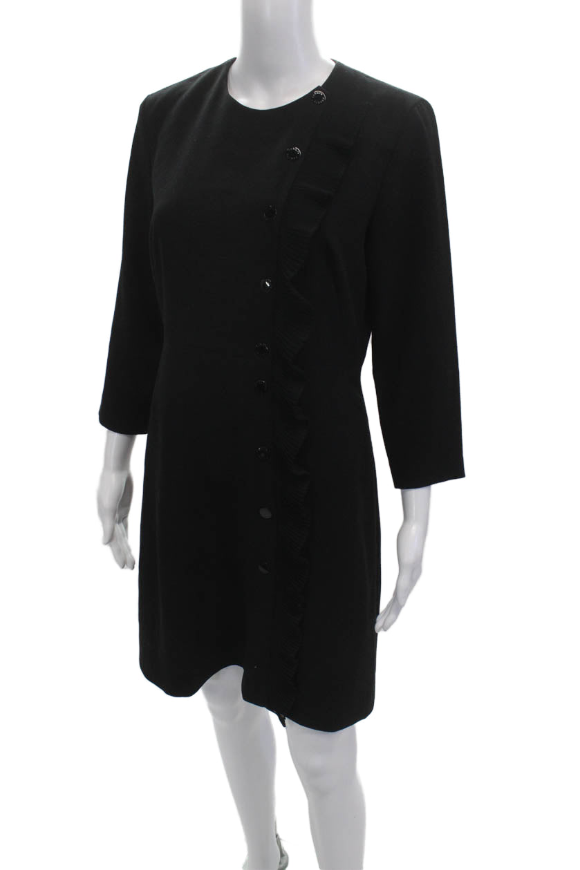 Sandro Women Black Shift Dress 3/4 Sleeve Round Neck Polyester Button Size M