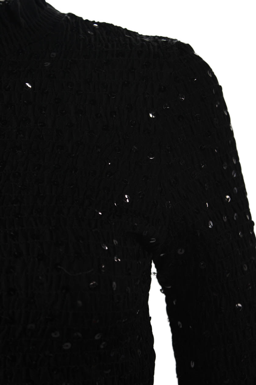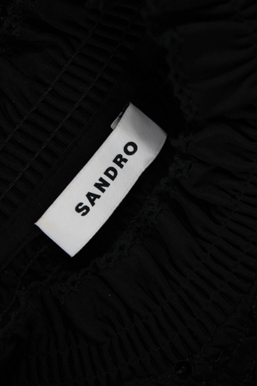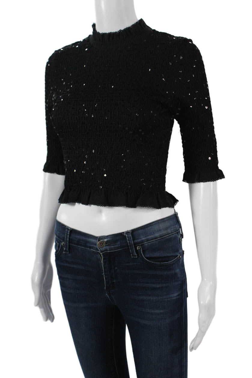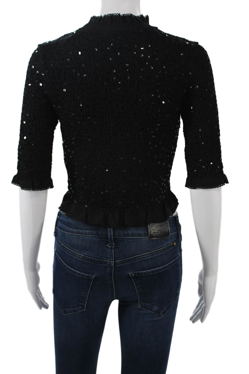 Sandro Women Cropped Mock Neck Black 3/4 Sleeve Top Size 0