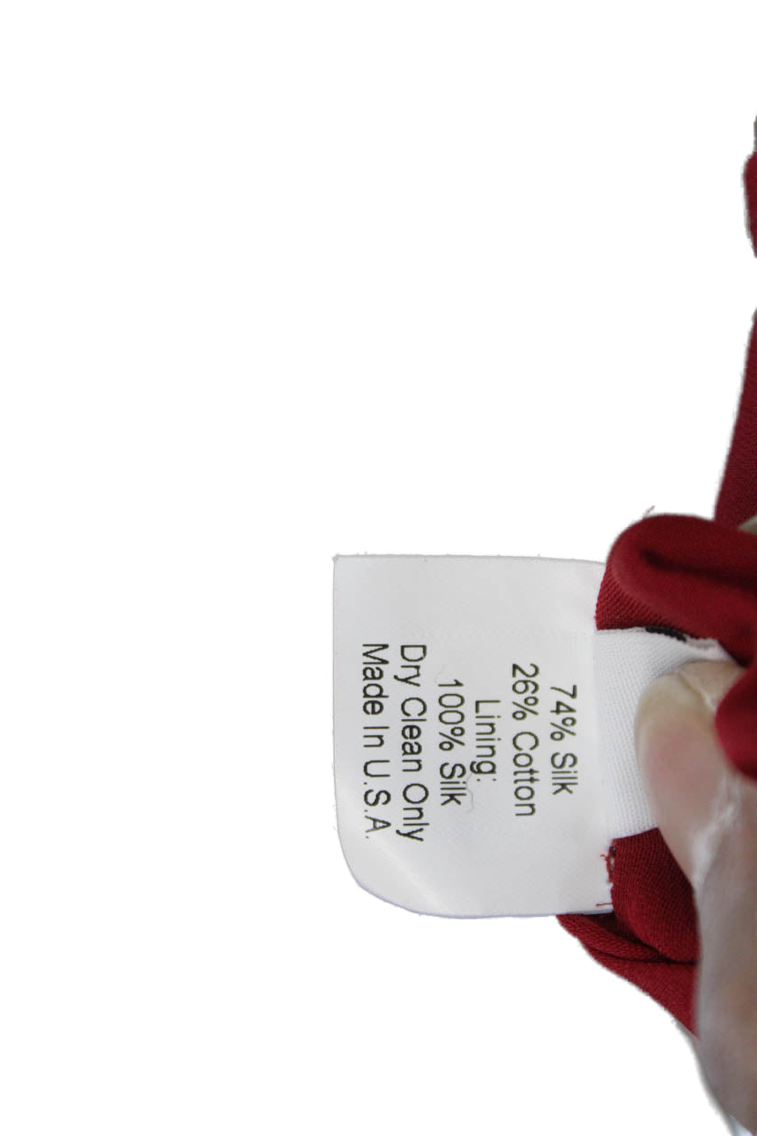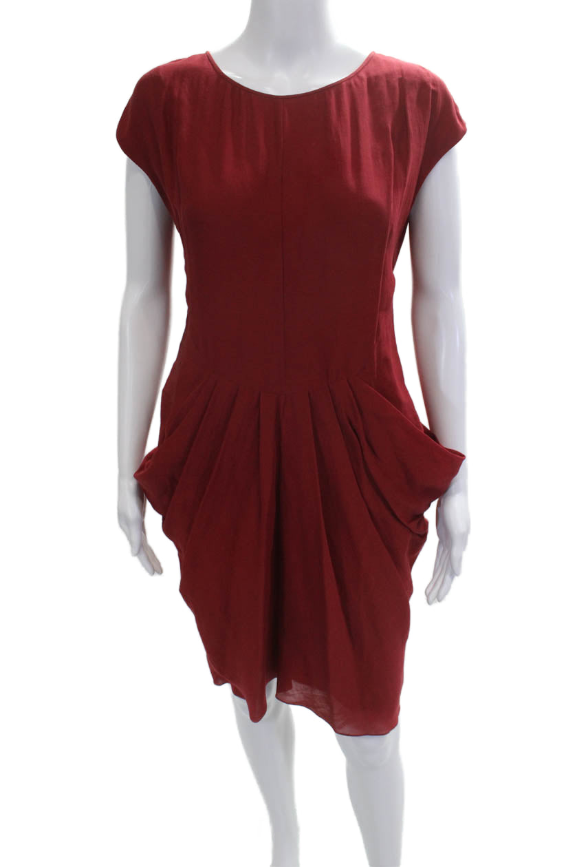 Sari Gueron Women Sheath Dress Red Silk Cotton Short Sleeve Zip Size 6