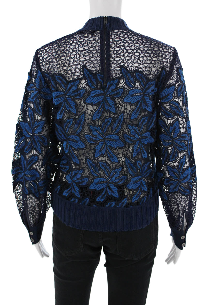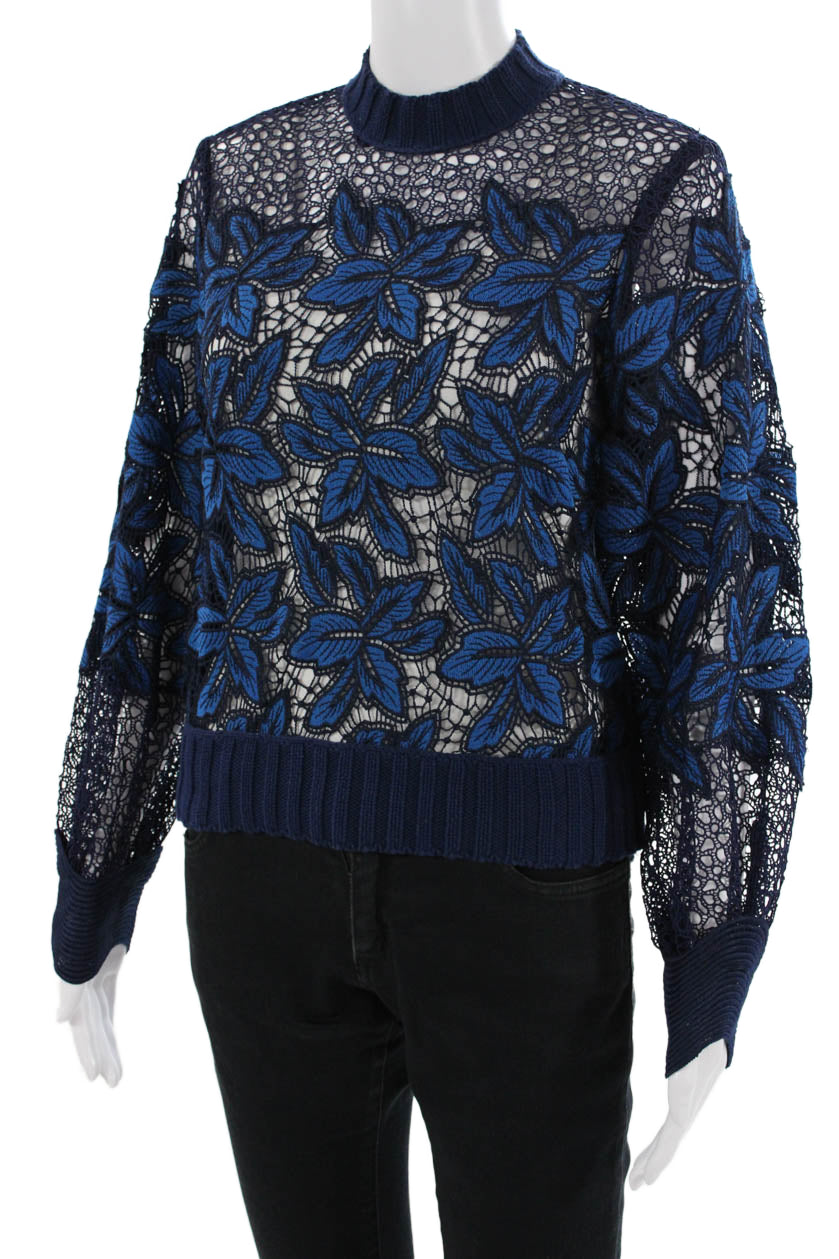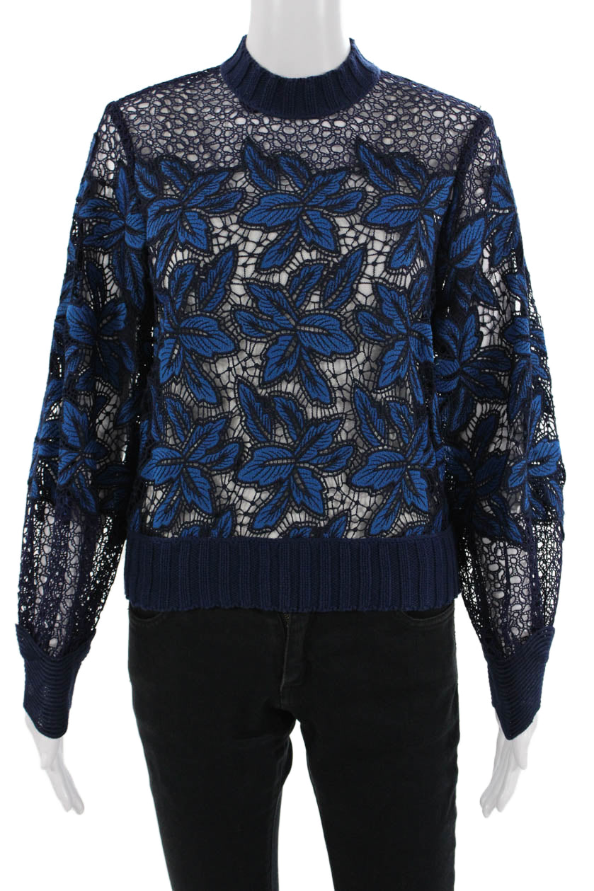 Sea New York Womens Pullover Crewneck Floral Polyester Sweater Button Size XS